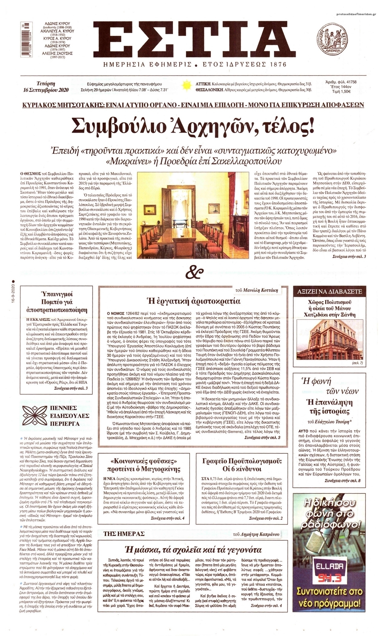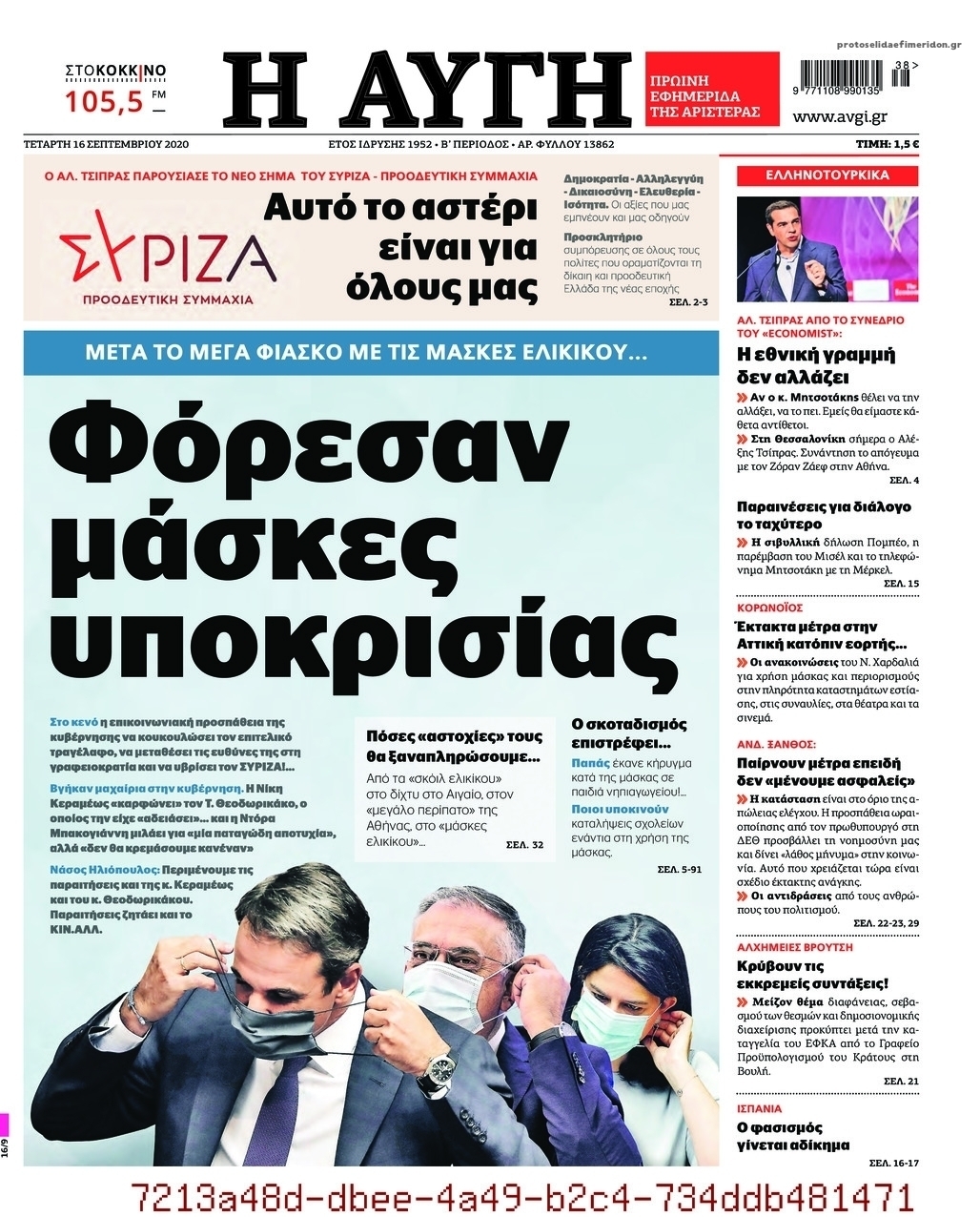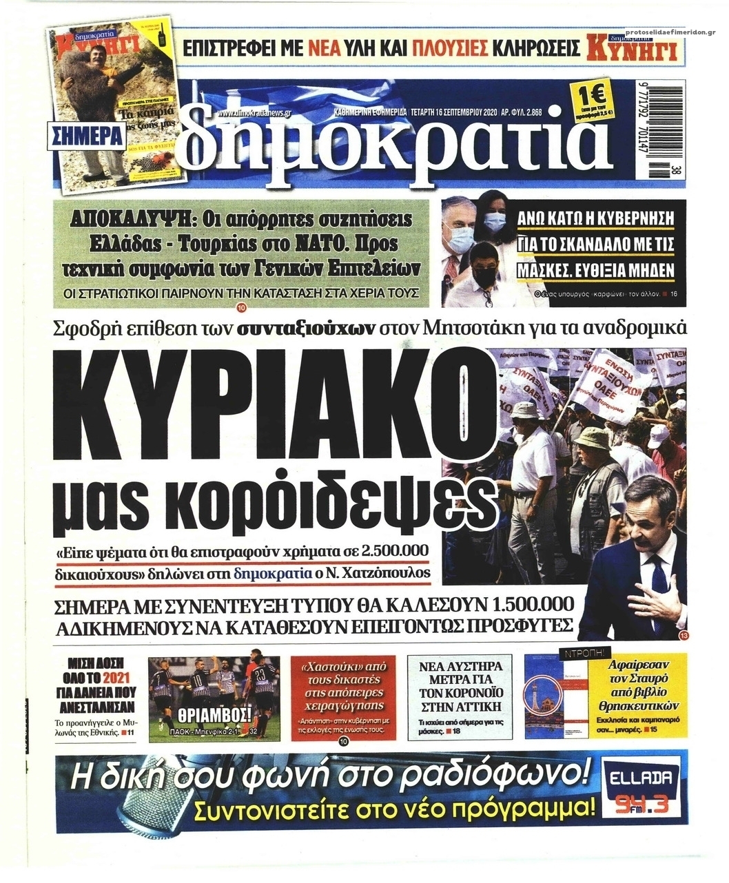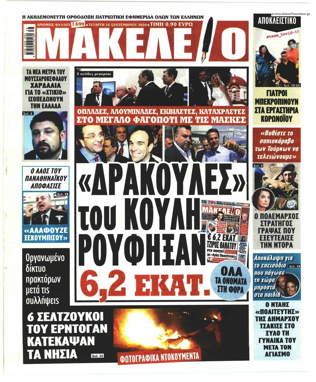NewsMEDIA Διαβάστε όλα τα πρωτοσέλιδα των πολιτικών εφημερίδων της Τετάρτης 16 Σεπτεμβρίου 2020 FacebookTwitterEmailViberWhatsAppCopy URLΤυπώνω Διαβάστε όλα τα πρωτοσέλιδα των πολιτικών εφημερίδων της Τετάρτης 16 Σεπτεμβρίου. Πλήρης ενημέρωση με μια γρήγορη ματιά!
