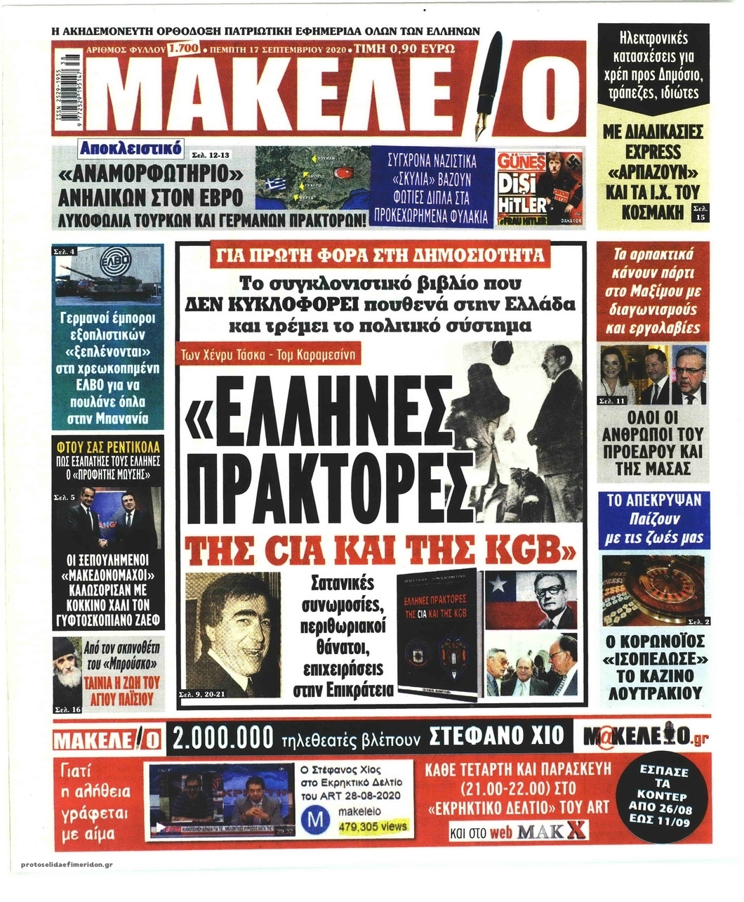 NewsMEDIASLIDER Διαβάστε όλα τα πρωτοσέλιδα των πολιτικών εφημερίδων της Πέμπτης 17 Σεπτεμβρίου 2020 FacebookTwitterEmailViberWhatsAppCopy URLΤυπώνω Διαβάστε όλα τα πρωτοσέλιδα των πολιτικών εφημερίδων της Πέμπτης 17 Σεπτεμβρίου. Πλήρης ενημέρωση με μια γρήγορη ματιά!