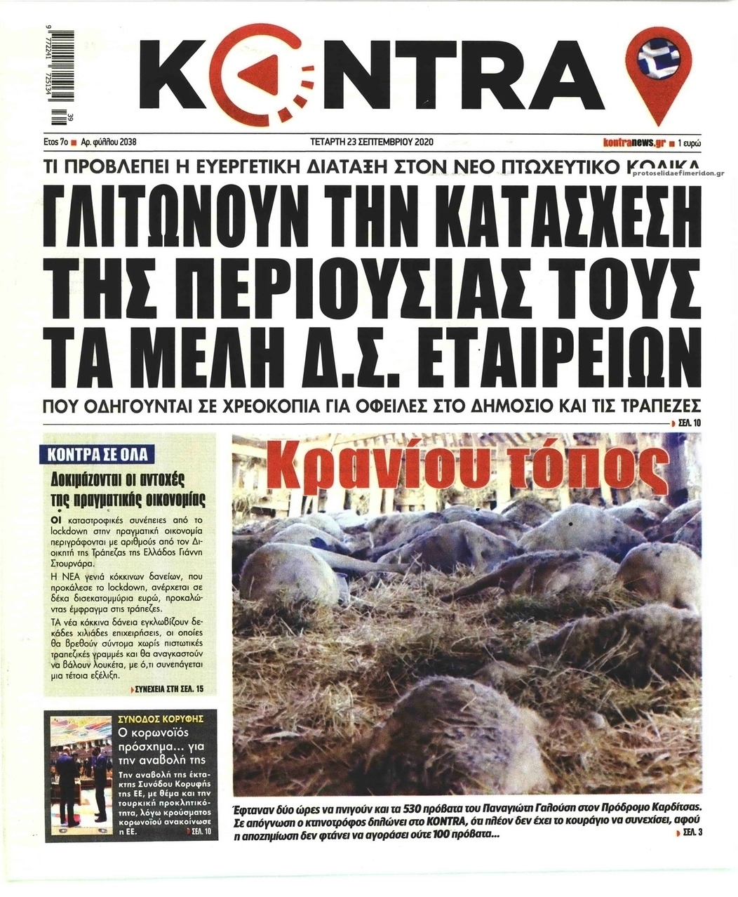 NewsMEDIASLIDER Διαβάστε όλα τα πρωτοσέλιδα των πολιτικών εφημερίδων της Τετάρτης 23 Σεπτεμβρίου 2020 FacebookTwitterEmailViberWhatsAppCopy URLΤυπώνω Διαβάστε όλα τα πρωτοσέλιδα των πολιτικών εφημερίδων της Τετάρτης 23 Σεπτεμβρίου. Πλήρης ενημέρωση με μια γρήγορη ματιά!