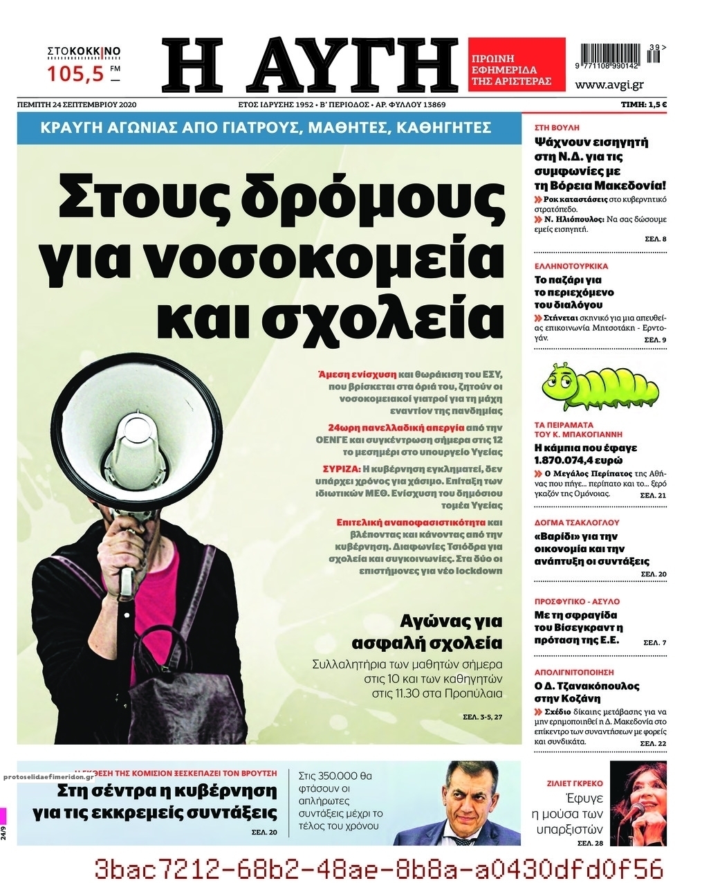 NewsMEDIASLIDER Διαβάστε όλα τα πρωτοσέλιδα των πολιτικών εφημερίδων της Πέμπτης 24 Σεπτεμβρίου 2020 FacebookXEmailViberWhatsAppCopy URLΤυπώνω Διαβάστε όλα τα πρωτοσέλιδα των πολιτικών εφημερίδων της Πέμπτης 24 Σεπτεμβρίου. Πλήρης ενημέρωση με μια γρήγορη ματιά!