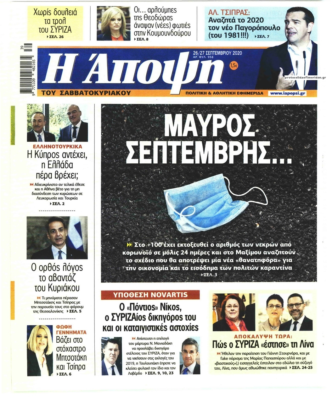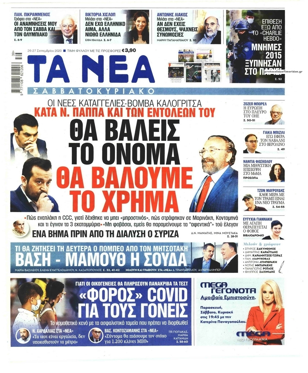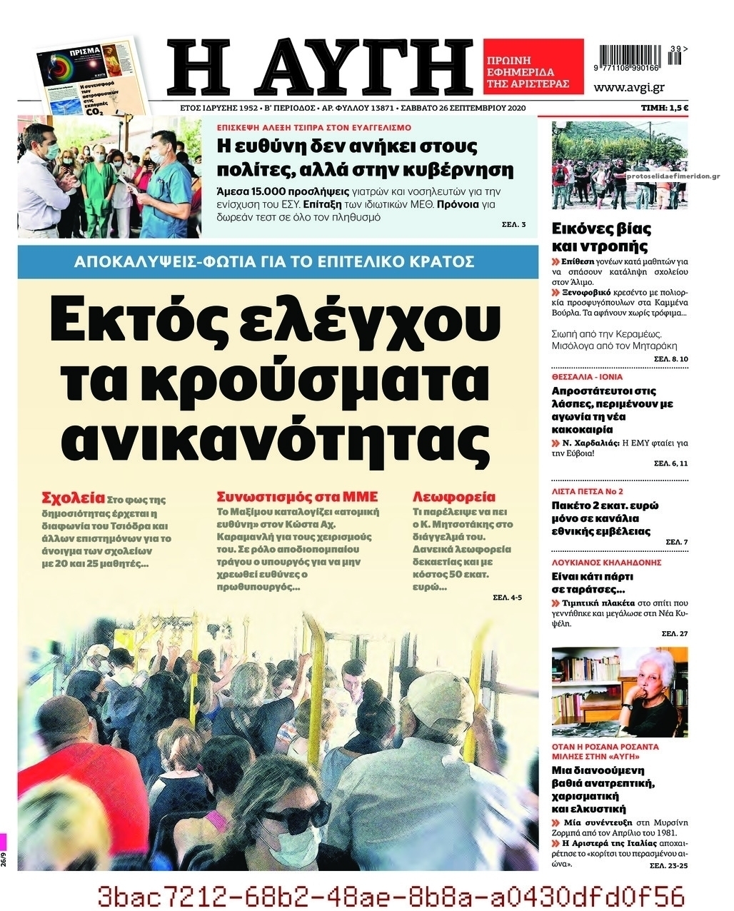 NewsMEDIASLIDER Διαβάστε όλα τα πρωτοσέλιδα των πολιτικών εφημερίδων του Σαββάτου 26 Σεπτεμβρίου 2020 FacebookTwitterEmailViberWhatsAppCopy URLΤυπώνω Διαβάστε όλα τα πρωτοσέλιδα των πολιτικών εφημερίδων του Σαββάτου 26 Σεπτεμβρίου. Πλήρης ενημέρωση με μια γρήγορη ματιά!