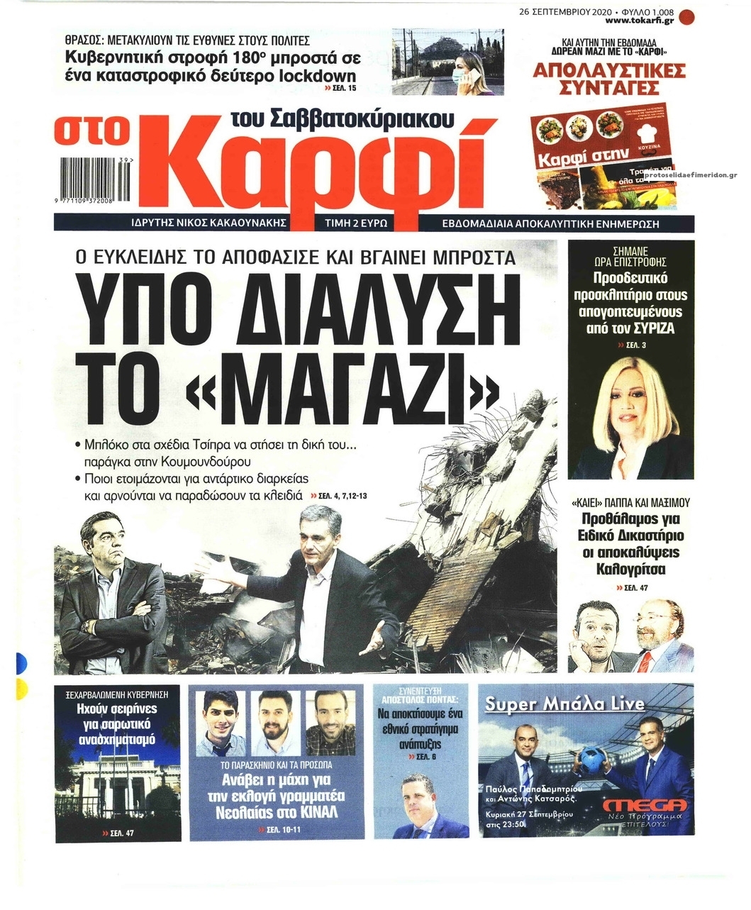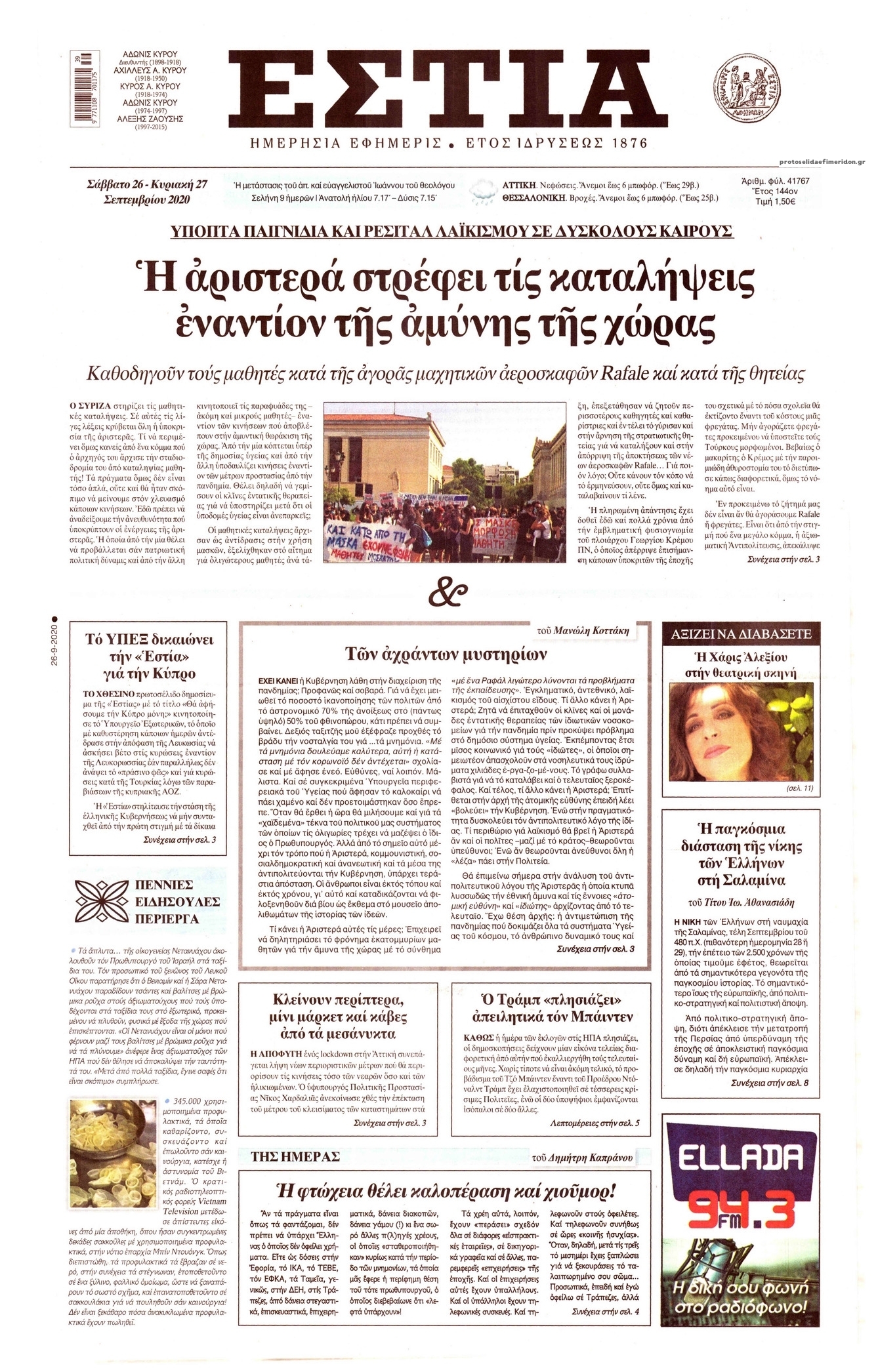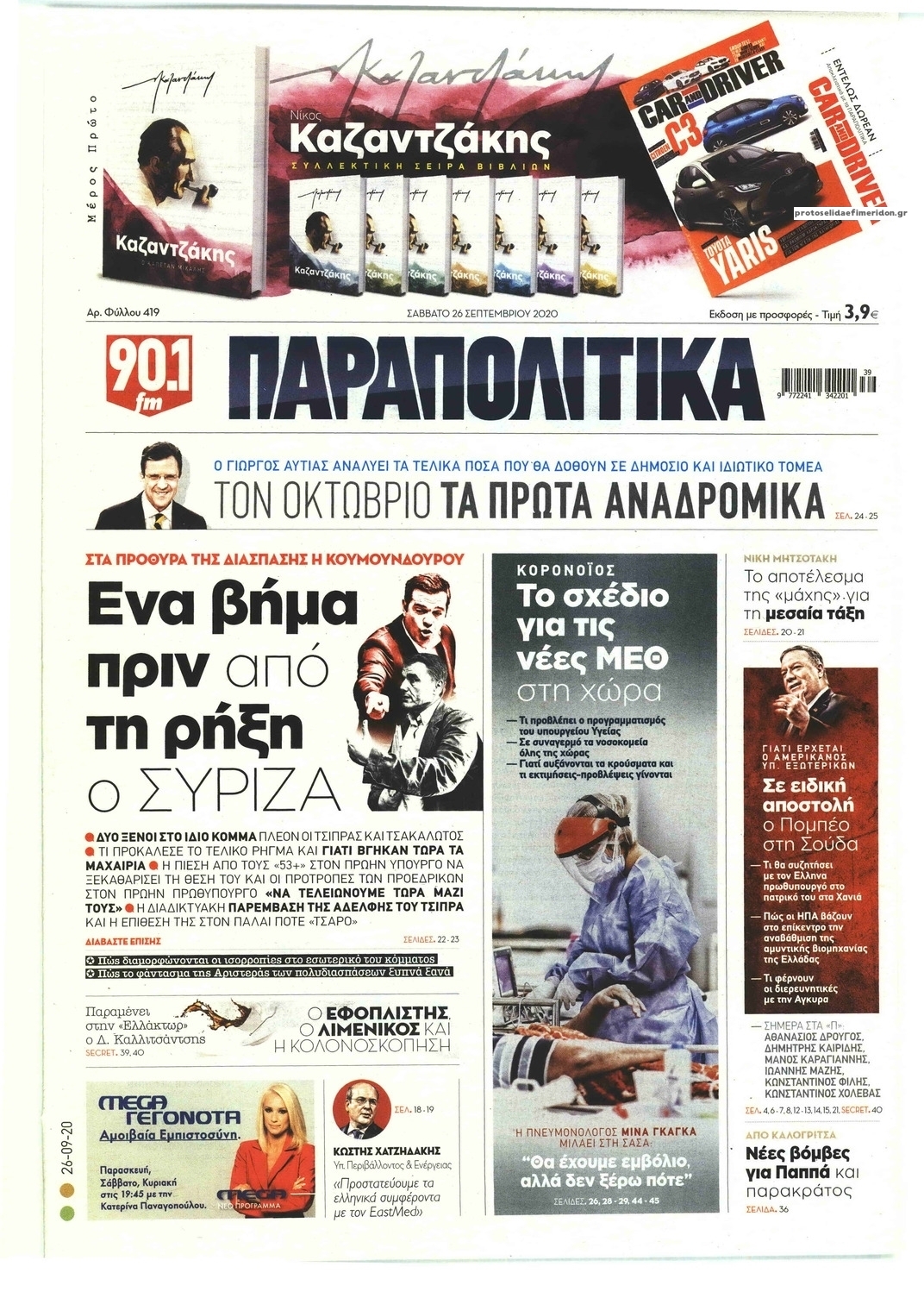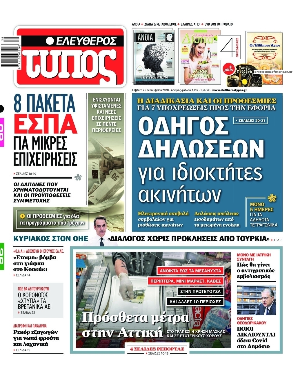NewsMEDIASLIDER Διαβάστε όλα τα πρωτοσέλιδα των πολιτικών εφημερίδων του Σαββάτου 26 Σεπτεμβρίου 2020 FacebookTwitterEmailViberWhatsAppCopy URLΤυπώνω Διαβάστε όλα τα πρωτοσέλιδα των πολιτικών εφημερίδων του Σαββάτου 26 Σεπτεμβρίου. Πλήρης ενημέρωση με μια γρήγορη ματιά!
