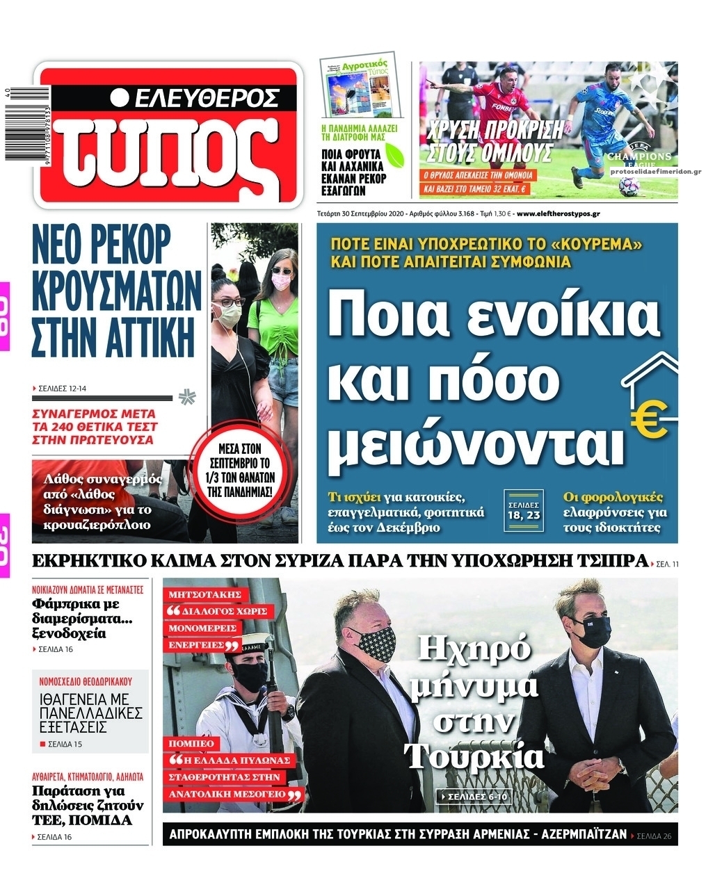 NewsMEDIASLIDER Διαβάστε όλα τα πρωτοσέλιδα των πολιτικών εφημερίδων της Τετάρτης 30 Σεπτεμβρίου 2020 FacebookXEmailViberWhatsAppCopy URLΤυπώνω Διαβάστε όλα τα πρωτοσέλιδα των πολιτικών εφημερίδων της Τετάρτης 30 Σεπτεμβρίου. Πλήρης ενημέρωση με μια γρήγορη ματιά!
