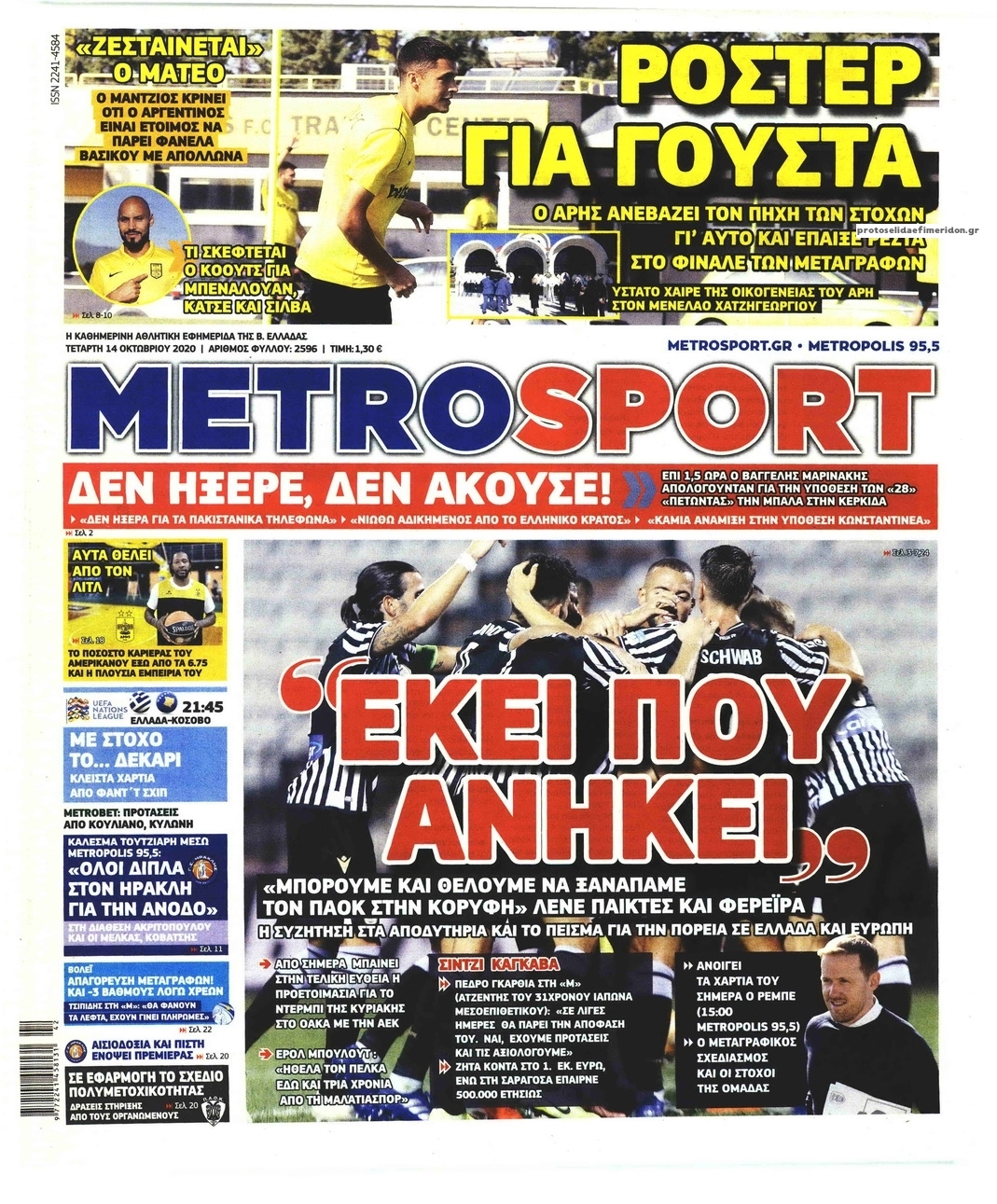 NewsMEDIA Διαβάστε όλα τα πρωτοσέλιδα των αθλητικών εφημερίδων της Τετάρτης 14 Οκτωβρίου 2020 FacebookTwitterEmailViberWhatsAppCopy URLΤυπώνω Διαβάστε όλα τα πρωτοσέλιδα των αθλητικών εφημερίδων της Τετάρτης 14 Οκτωβρίου. Πλήρης ενημέρωση με μια γρήγορη ματιά!