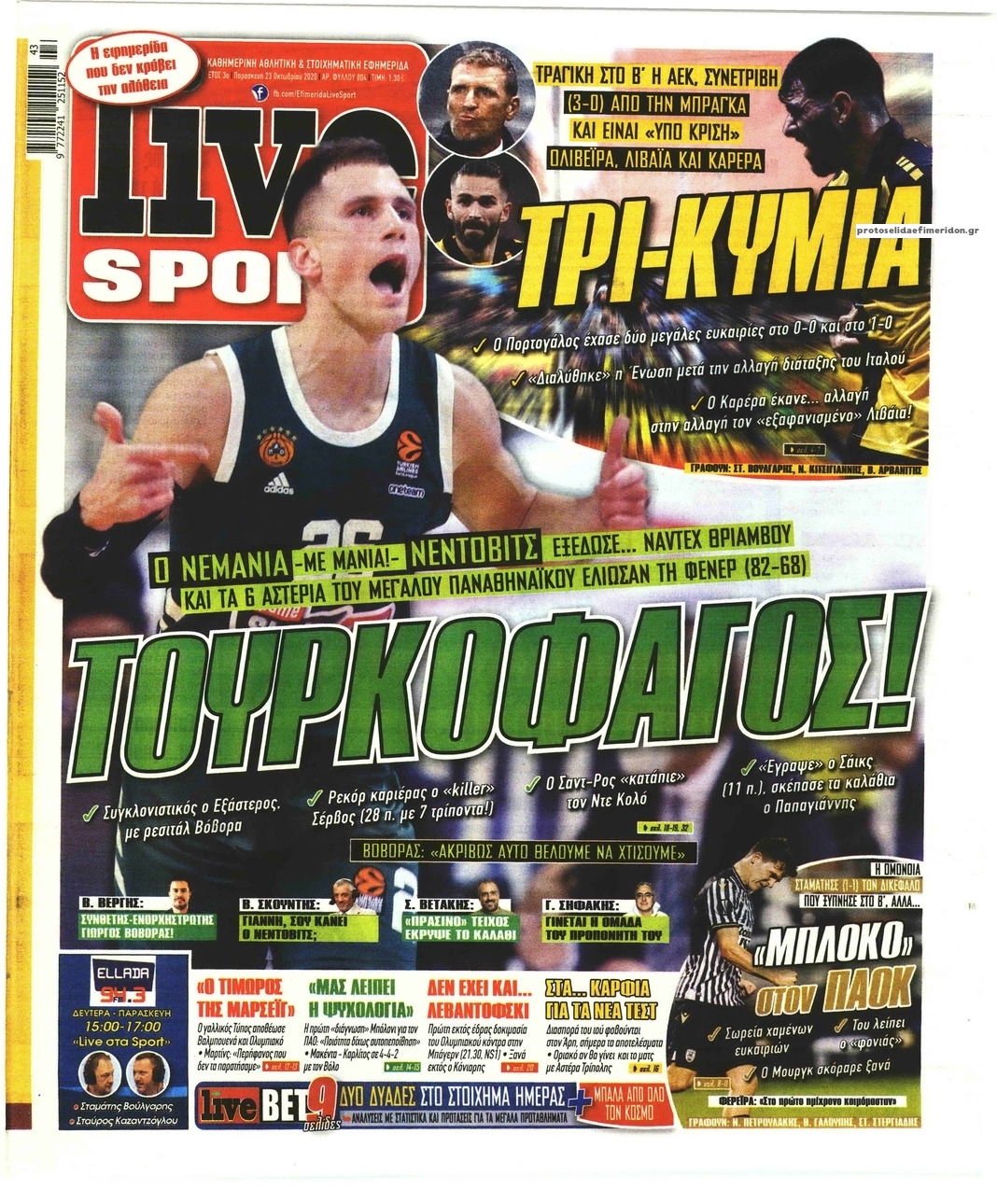 NewsMEDIA Διαβάστε όλα τα πρωτοσέλιδα των αθλητικών εφημερίδων της Παρασκευής 23 Οκτωβρίου 2020 FacebookXEmailViberWhatsAppCopy URLΤυπώνω Διαβάστε όλα τα πρωτοσέλιδα των αθλητικών εφημερίδων της Παρασκευής 23 Οκτωβρίου. Πλήρης ενημέρωση με μια γρήγορη ματιά!
