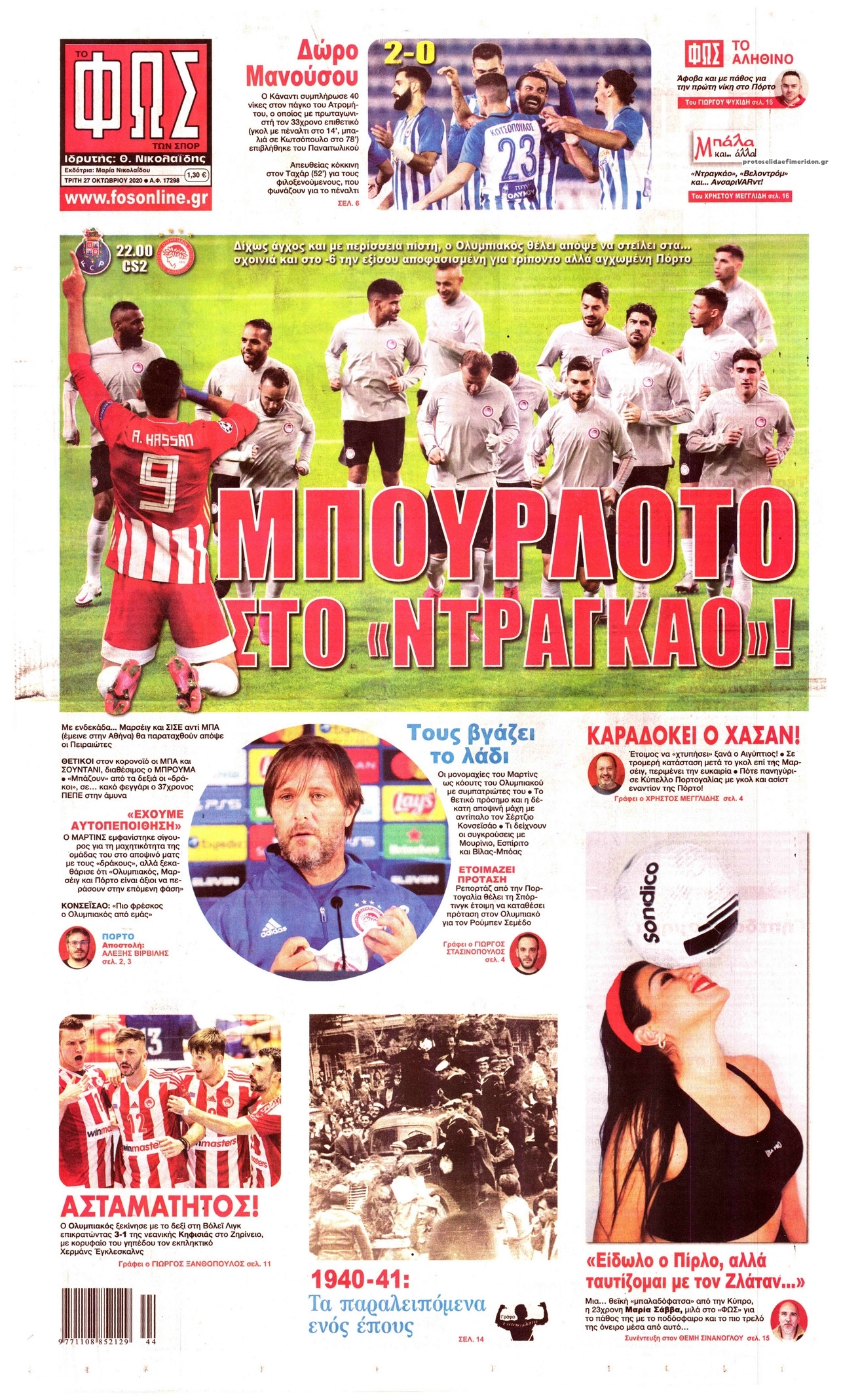 NewsMEDIA Διαβάστε όλα τα πρωτοσέλιδα των αθλητικών εφημερίδων της Τρίτης 27 Οκτωβρίου 2020 FacebookTwitterEmailViberWhatsAppCopy URLΤυπώνω Διαβάστε όλα τα πρωτοσέλιδα των αθλητικών εφημερίδων της Τρίτης 27 Οκτωβρίου. Πλήρης ενημέρωση με μια γρήγορη ματιά!