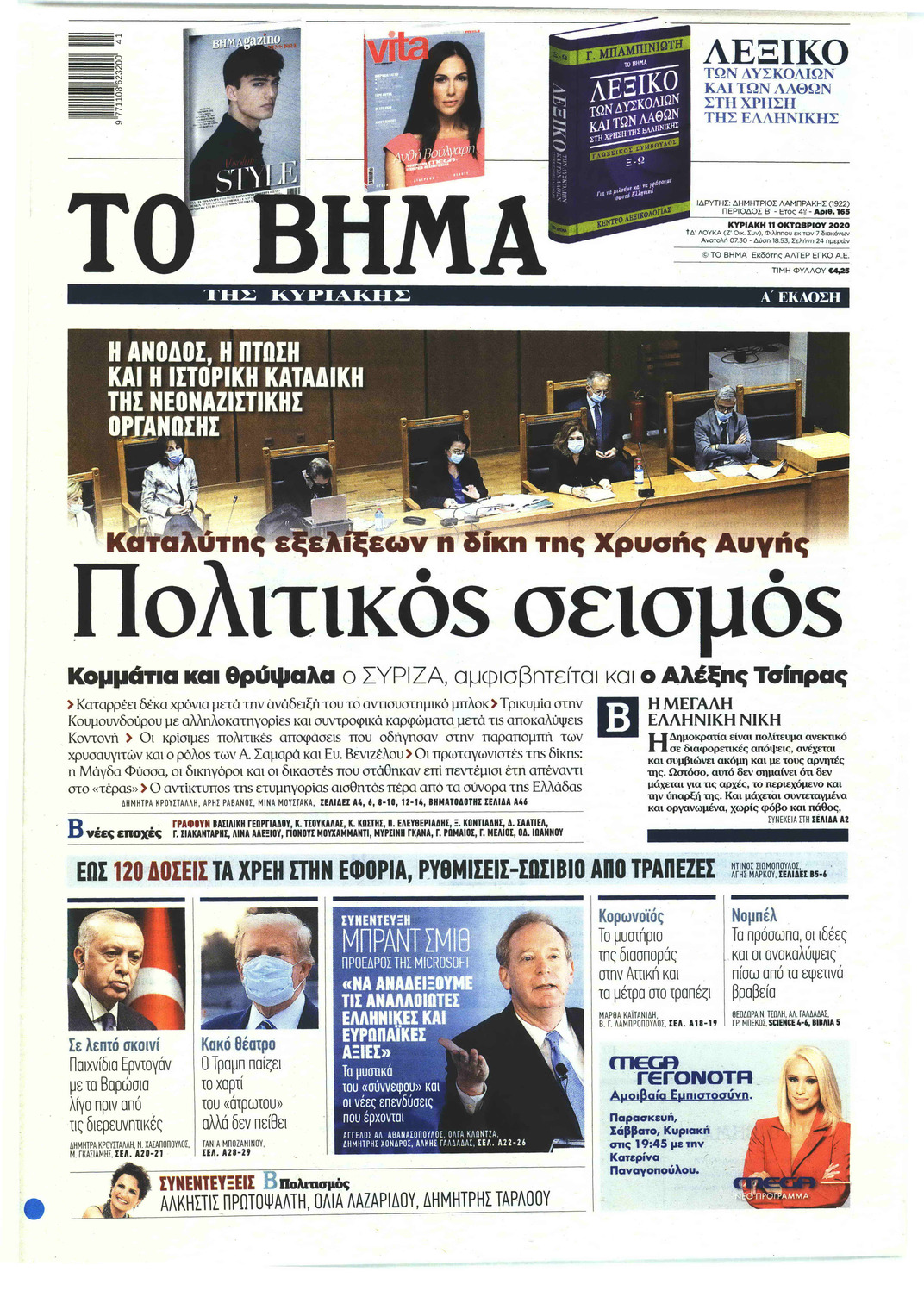 NewsMEDIASLIDER Διαβάστε όλα τα πρωτοσέλιδα των πολιτικών εφημερίδων της Κυριακής 11 Οκτωβρίου 2020 FacebookTwitterEmailViberWhatsAppCopy URLΤυπώνω Διαβάστε όλα τα πρωτοσέλιδα των πολιτικών εφημερίδων της Κυριακής 11 Οκτωβρίου. Πλήρης ενημέρωση με μια γρήγορη ματιά!