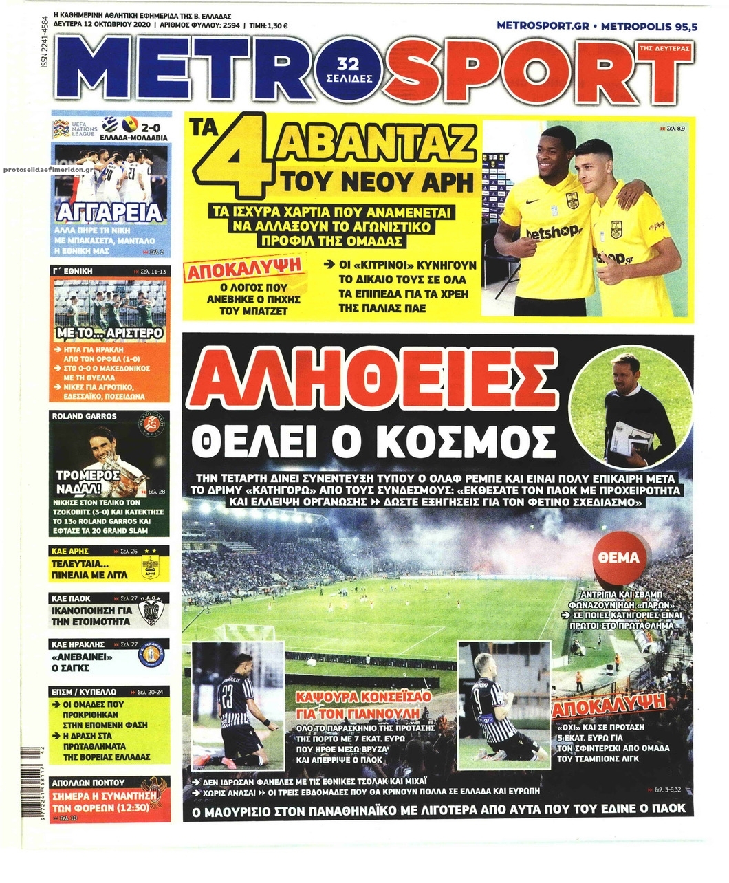 NewsMEDIA Διαβάστε όλα τα πρωτοσέλιδα των αθλητικών εφημερίδων της Δευτέρας 12 Οκτωβρίου 2020 FacebookTwitterEmailViberWhatsAppCopy URLΤυπώνω Διαβάστε όλα τα πρωτοσέλιδα των αθλητικών εφημερίδων της Δευτέρας 12 Οκτωβρίου. Πλήρης ενημέρωση με μια γρήγορη ματιά!