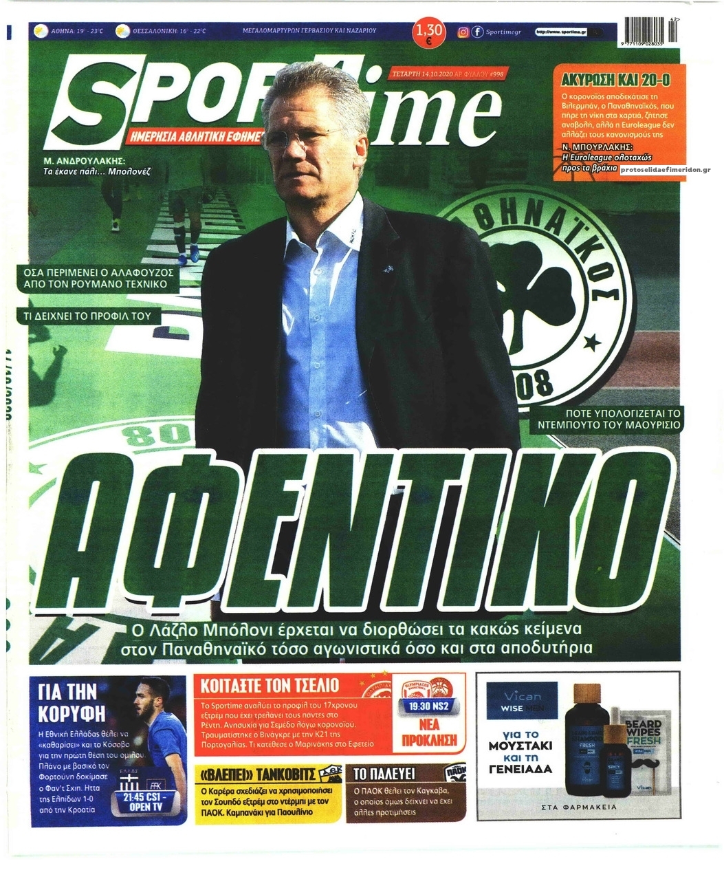 NewsMEDIA Διαβάστε όλα τα πρωτοσέλιδα των αθλητικών εφημερίδων της Τετάρτης 14 Οκτωβρίου 2020 FacebookTwitterEmailViberWhatsAppCopy URLΤυπώνω Διαβάστε όλα τα πρωτοσέλιδα των αθλητικών εφημερίδων της Τετάρτης 14 Οκτωβρίου. Πλήρης ενημέρωση με μια γρήγορη ματιά!
