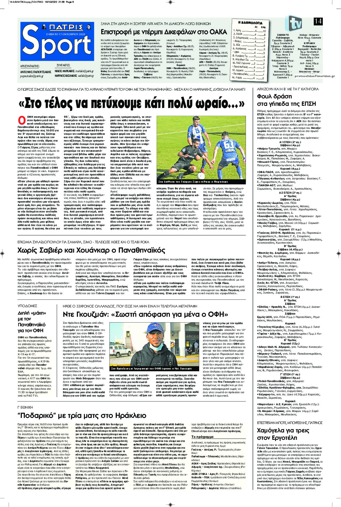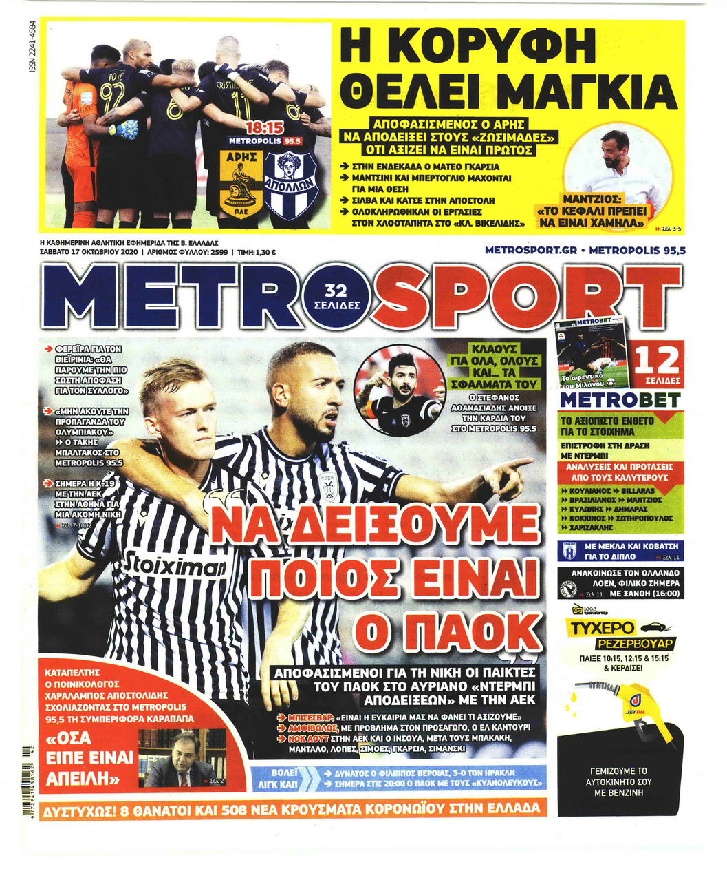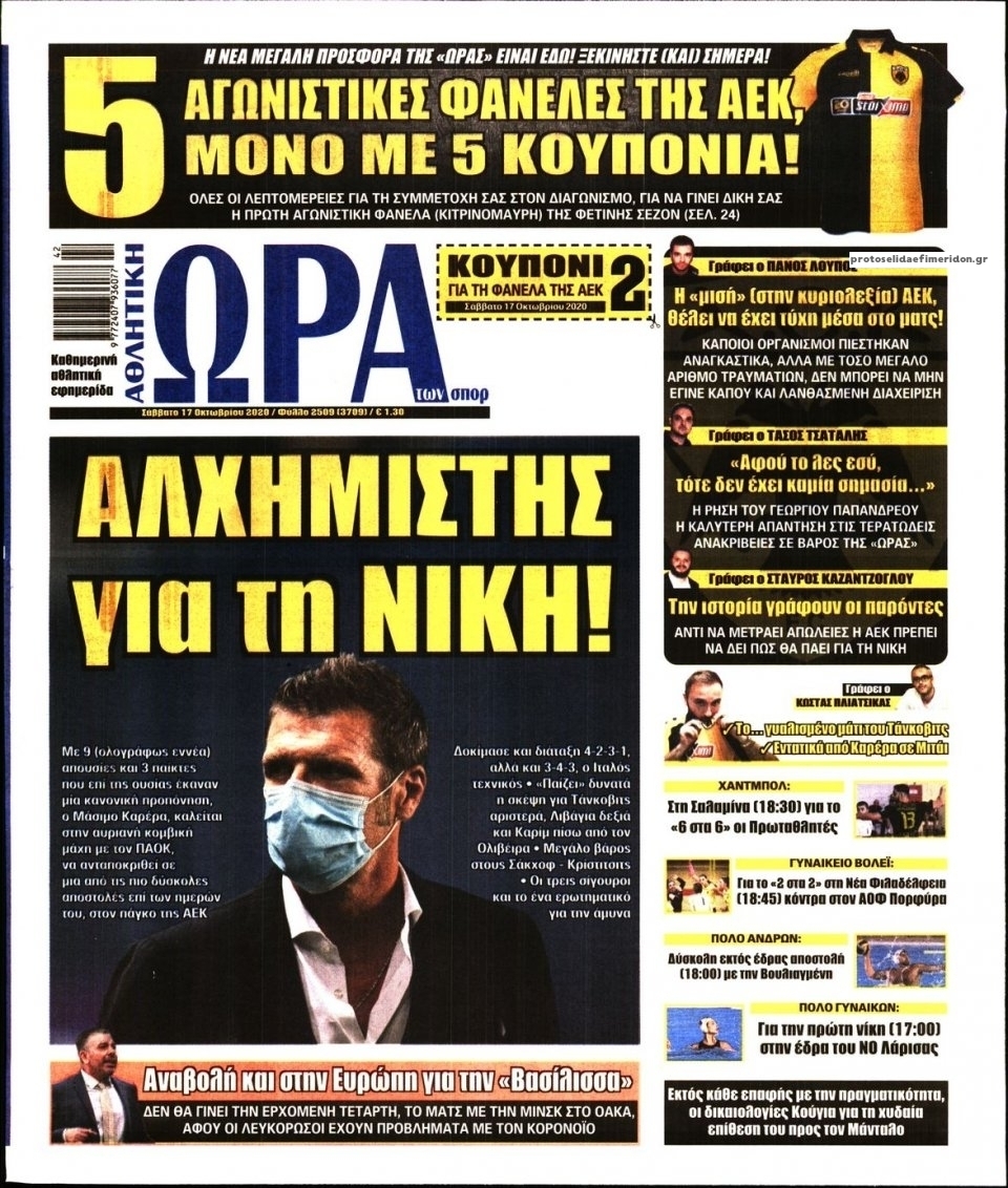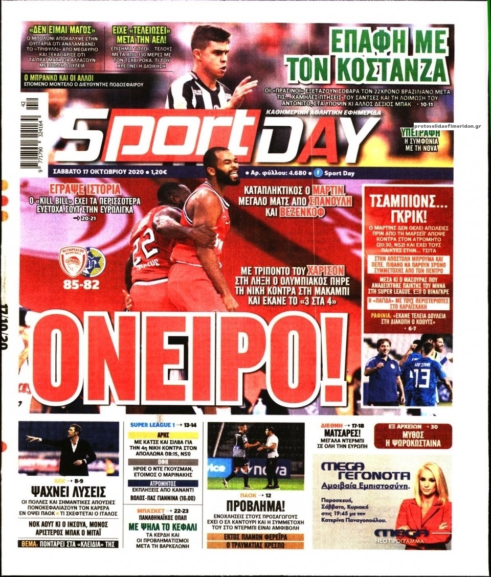 NewsMEDIA Διαβάστε όλα τα πρωτοσέλιδα των αθλητικών εφημερίδων του Σαββάτου 17 Οκτωβρίου 2020 FacebookTwitterEmailViberWhatsAppCopy URLΤυπώνω Διαβάστε όλα τα πρωτοσέλιδα των αθλητικών εφημερίδων του Σαββάτου 17 Οκτωβρίου. Πλήρης ενημέρωση με μια γρήγορη ματιά!