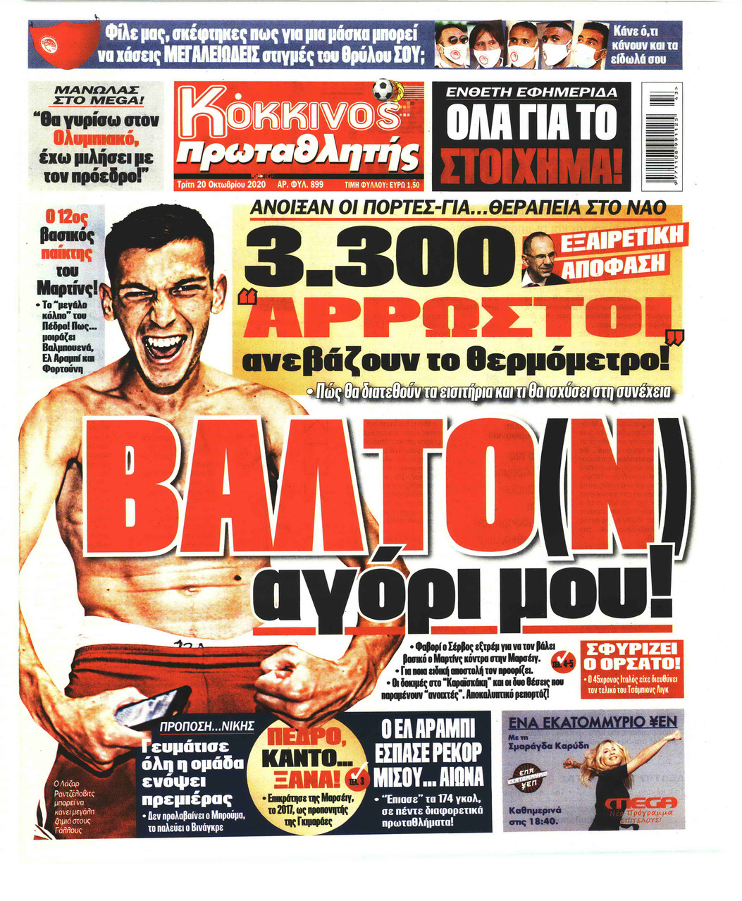 NewsMEDIA Διαβάστε όλα τα πρωτοσέλιδα των αθλητικών εφημερίδων της Τρίτης 20 Οκτωβρίου 2020 FacebookTwitterEmailViberWhatsAppCopy URLΤυπώνω Διαβάστε όλα τα πρωτοσέλιδα των αθλητικών εφημερίδων της Τρίτης 20 Οκτωβρίου. Πλήρης ενημέρωση με μια γρήγορη ματιά!