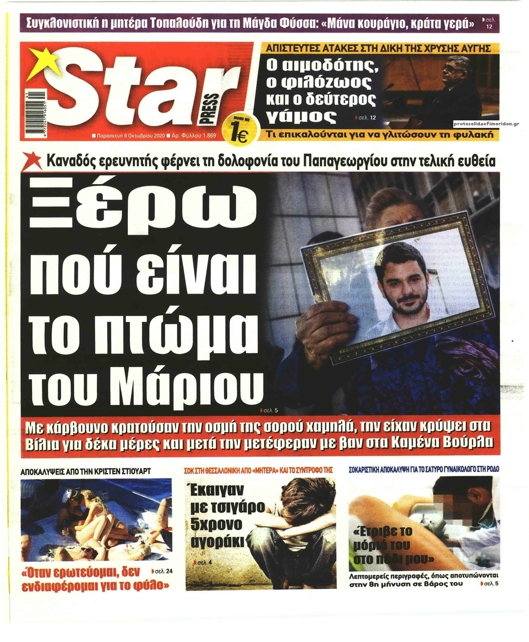 NewsMEDIASLIDER Διαβάστε όλα τα πρωτοσέλιδα των πολιτικών εφημερίδων της Παρασκευής 9 Οκτωβρίου 2020 FacebookXEmailViberWhatsAppCopy URLΤυπώνω Διαβάστε όλα τα πρωτοσέλιδα των πολιτικών εφημερίδων της Παρασκευής 9 Οκτωβρίου. Πλήρης ενημέρωση με μια γρήγορη ματιά!