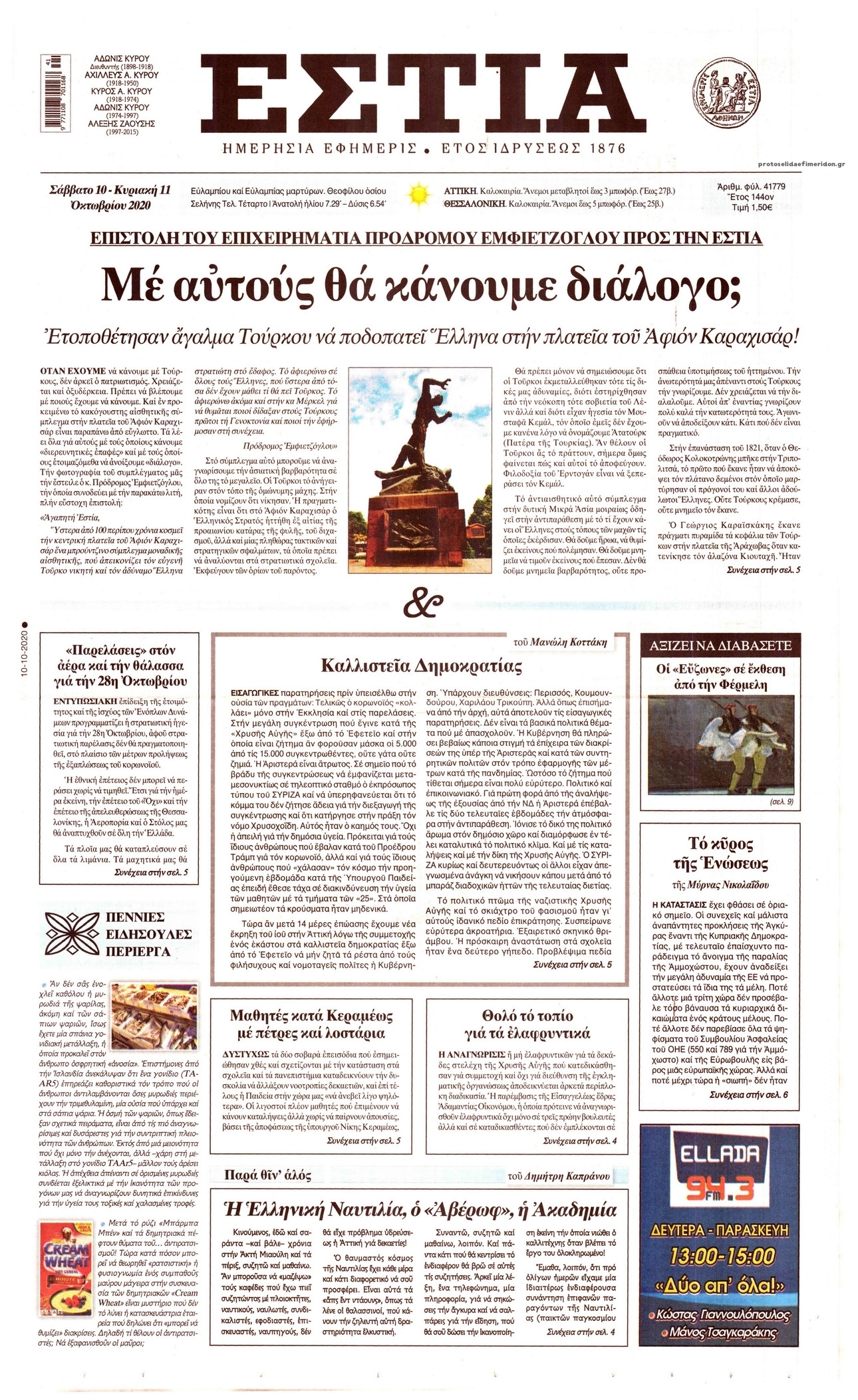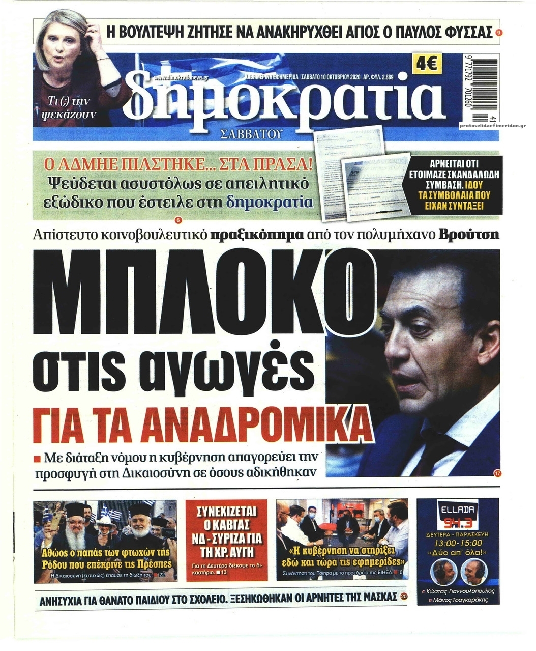 NewsMEDIASLIDER Διαβάστε όλα τα πρωτοσέλιδα των πολιτικών εφημερίδων του Σαββάτου 10 Οκτωβρίου 2020 FacebookTwitterEmailViberWhatsAppCopy URLΤυπώνω Διαβάστε όλα τα πρωτοσέλιδα των πολιτικών εφημερίδων του Σαββάτου 10 Οκτωβρίου. Πλήρης ενημέρωση με μια γρήγορη ματιά!
