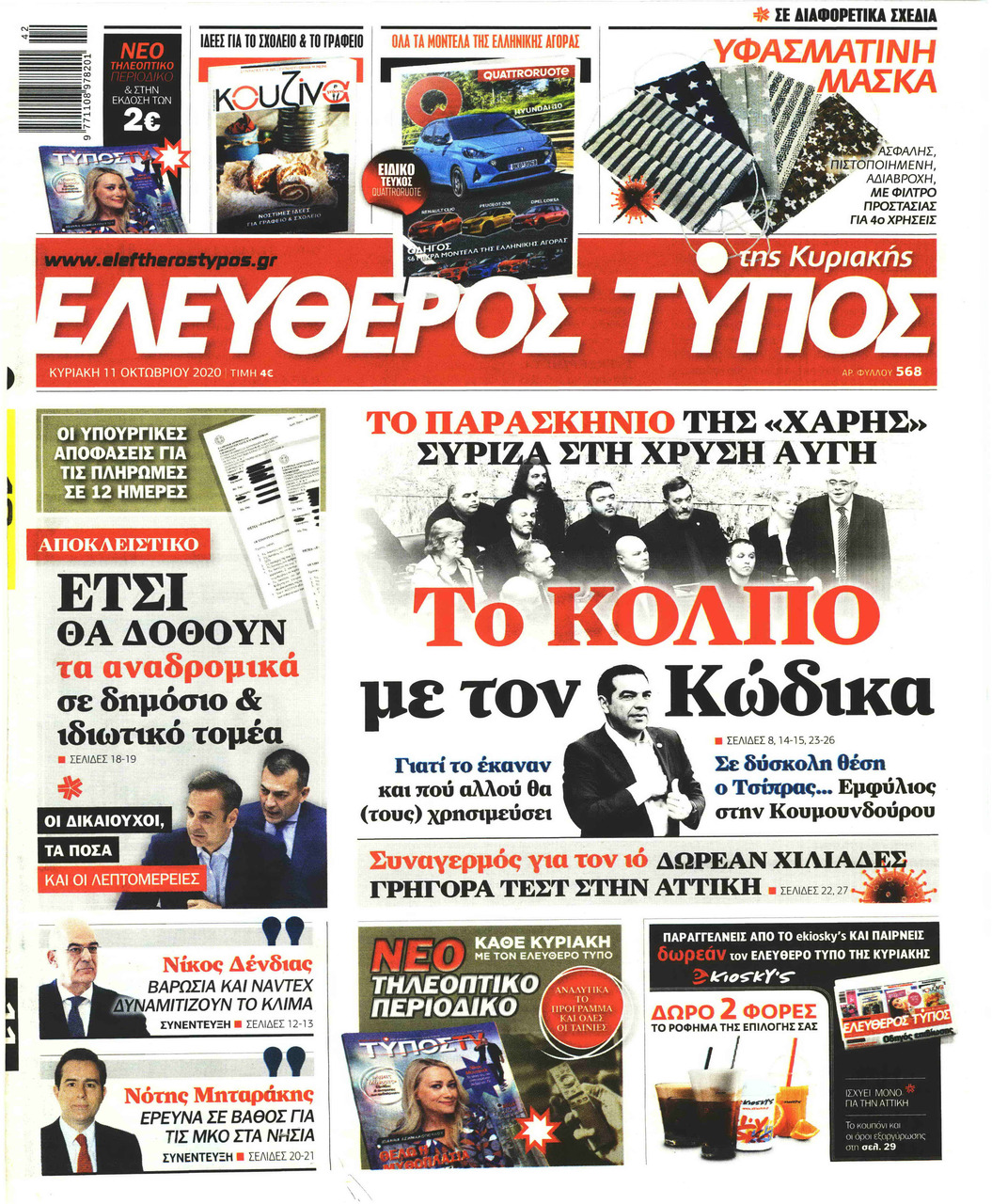 NewsMEDIASLIDER Διαβάστε όλα τα πρωτοσέλιδα των πολιτικών εφημερίδων της Κυριακής 11 Οκτωβρίου 2020 FacebookTwitterEmailViberWhatsAppCopy URLΤυπώνω Διαβάστε όλα τα πρωτοσέλιδα των πολιτικών εφημερίδων της Κυριακής 11 Οκτωβρίου. Πλήρης ενημέρωση με μια γρήγορη ματιά!