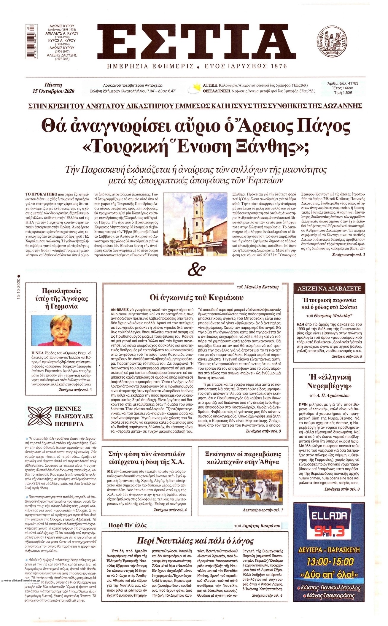 NewsMEDIASLIDER Διαβάστε όλα τα πρωτοσέλιδα των πολιτικών εφημερίδων της Πέμπτης 15 Οκτωβρίου 2020 FacebookTwitterEmailViberWhatsAppCopy URLΤυπώνω Διαβάστε όλα τα πρωτοσέλιδα των πολιτικών εφημερίδων της Πέμπτης 15 Οκτωβρίου. Πλήρης ενημέρωση με μια γρήγορη ματιά!