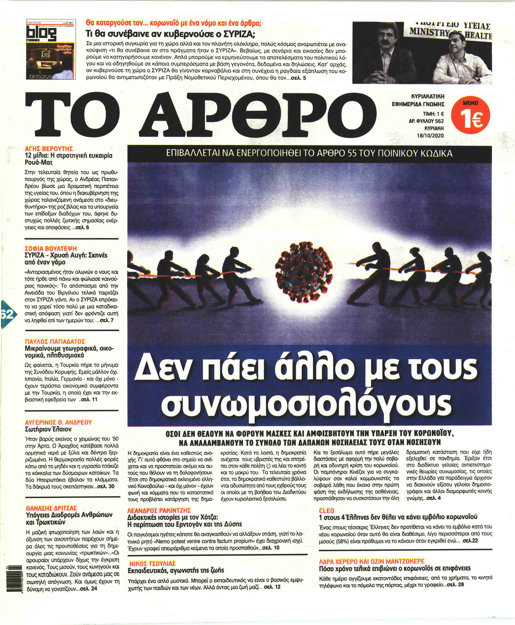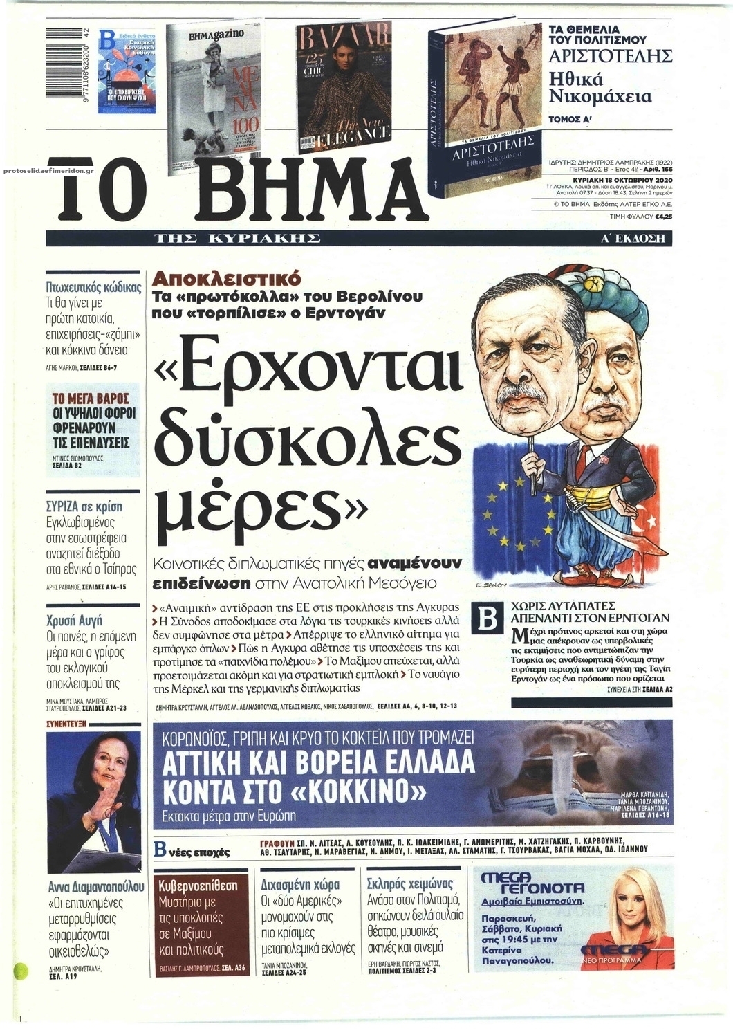 NewsMEDIA Διαβάστε όλα τα πρωτοσέλιδα των πολιτικών εφημερίδων της Κυριακής 18 Οκτωβρίου 2020 FacebookTwitterEmailViberWhatsAppCopy URLΤυπώνω Διαβάστε όλα τα πρωτοσέλιδα των πολιτικών εφημερίδων της Κυριακής 18 Οκτωβρίου. Πλήρης ενημέρωση με μια γρήγορη ματιά!