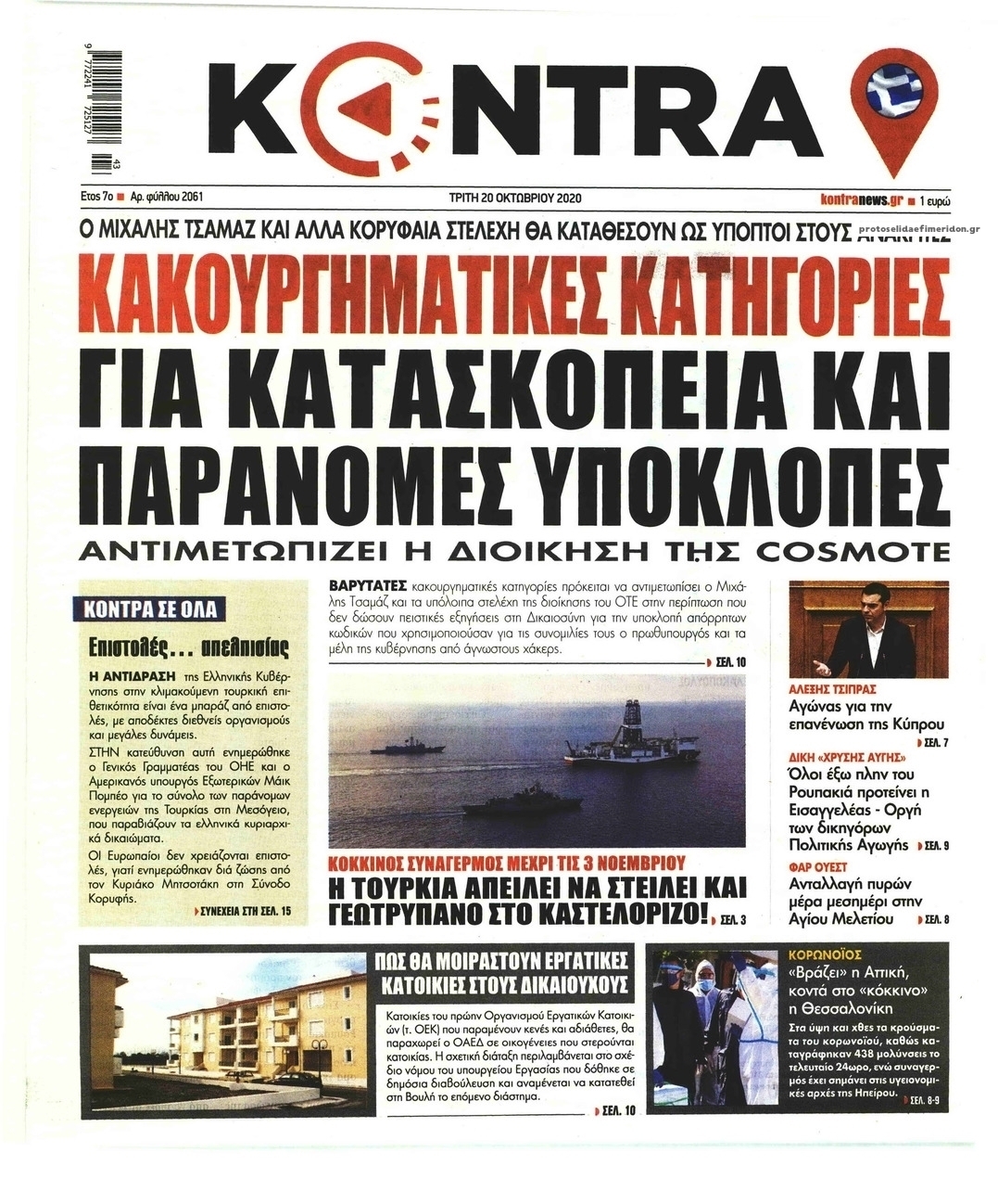 NewsMEDIASLIDER Διαβάστε όλα τα πρωτοσέλιδα των πολιτικών εφημερίδων της Τρίτης 20 Οκτωβρίου 2020 FacebookXEmailViberWhatsAppCopy URLΤυπώνω Διαβάστε όλα τα πρωτοσέλιδα των πολιτικών εφημερίδων της Τρίτης 20 Οκτωβρίου. Πλήρης ενημέρωση με μια γρήγορη ματιά!