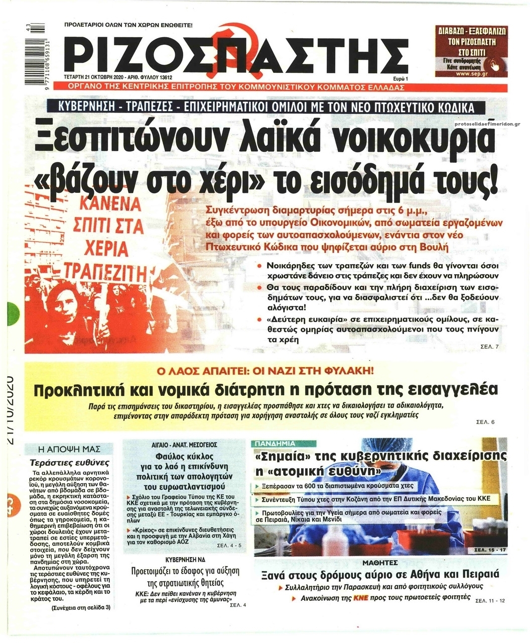 NewsMEDIASLIDER Διαβάστε όλα τα πρωτοσέλιδα των πολιτικών εφημερίδων της Τετάρτης 21 Οκτωβρίου 2020 FacebookXEmailViberWhatsAppCopy URLΤυπώνω Διαβάστε όλα τα πρωτοσέλιδα των πολιτικών εφημερίδων της Τετάρτης 21 Οκτωβρίου. Πλήρης ενημέρωση με μια γρήγορη ματιά!