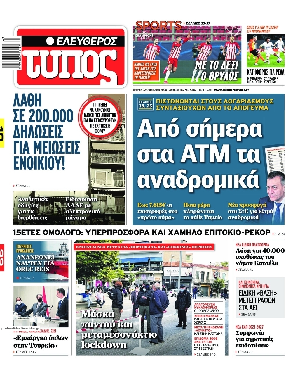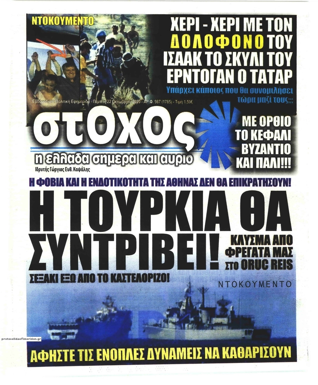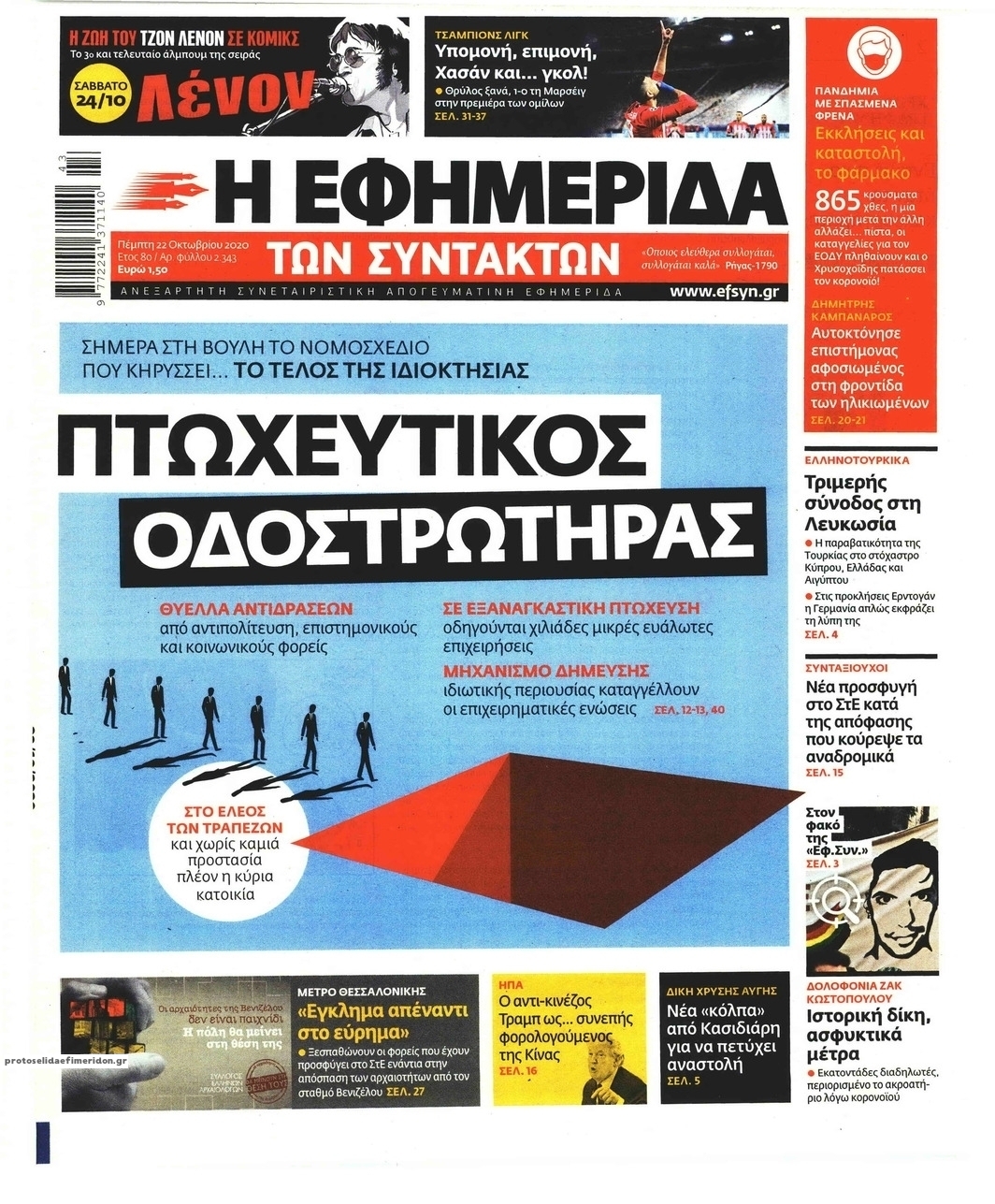 NewsMEDIA Διαβάστε όλα τα πρωτοσέλιδα των πολιτικών εφημερίδων της Πέμπτης 22 Οκτωβρίου 2020 FacebookTwitterEmailViberWhatsAppCopy URLΤυπώνω Διαβάστε όλα τα πρωτοσέλιδα των πολιτικών εφημερίδων της Πέμπτης 22 Οκτωβρίου. Πλήρης ενημέρωση με μια γρήγορη ματιά!