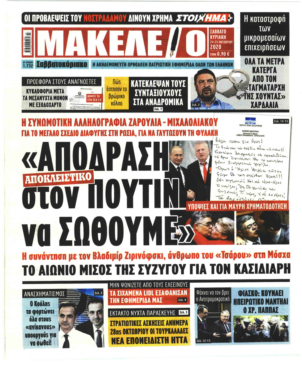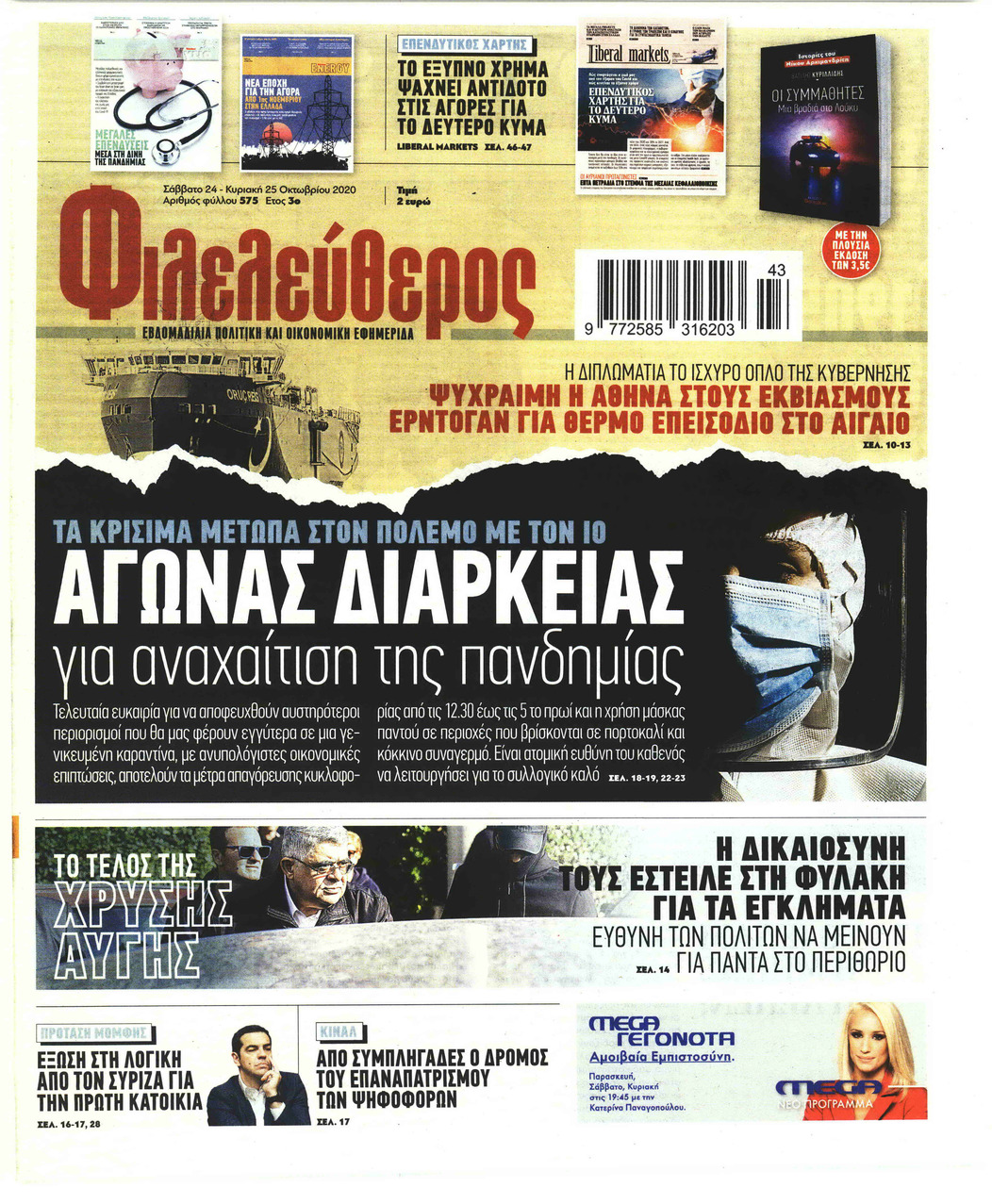 NewsMEDIASLIDER Διαβάστε όλα τα πρωτοσέλιδα των πολιτικών εφημερίδων του Σαββάτου 24 Οκτωβρίου 2020 FacebookXEmailViberWhatsAppCopy URLΤυπώνω Διαβάστε όλα τα πρωτοσέλιδα των πολιτικών εφημερίδων του Σαββάτου 24 Οκτωβρίου. Πλήρης ενημέρωση με μια γρήγορη ματιά!