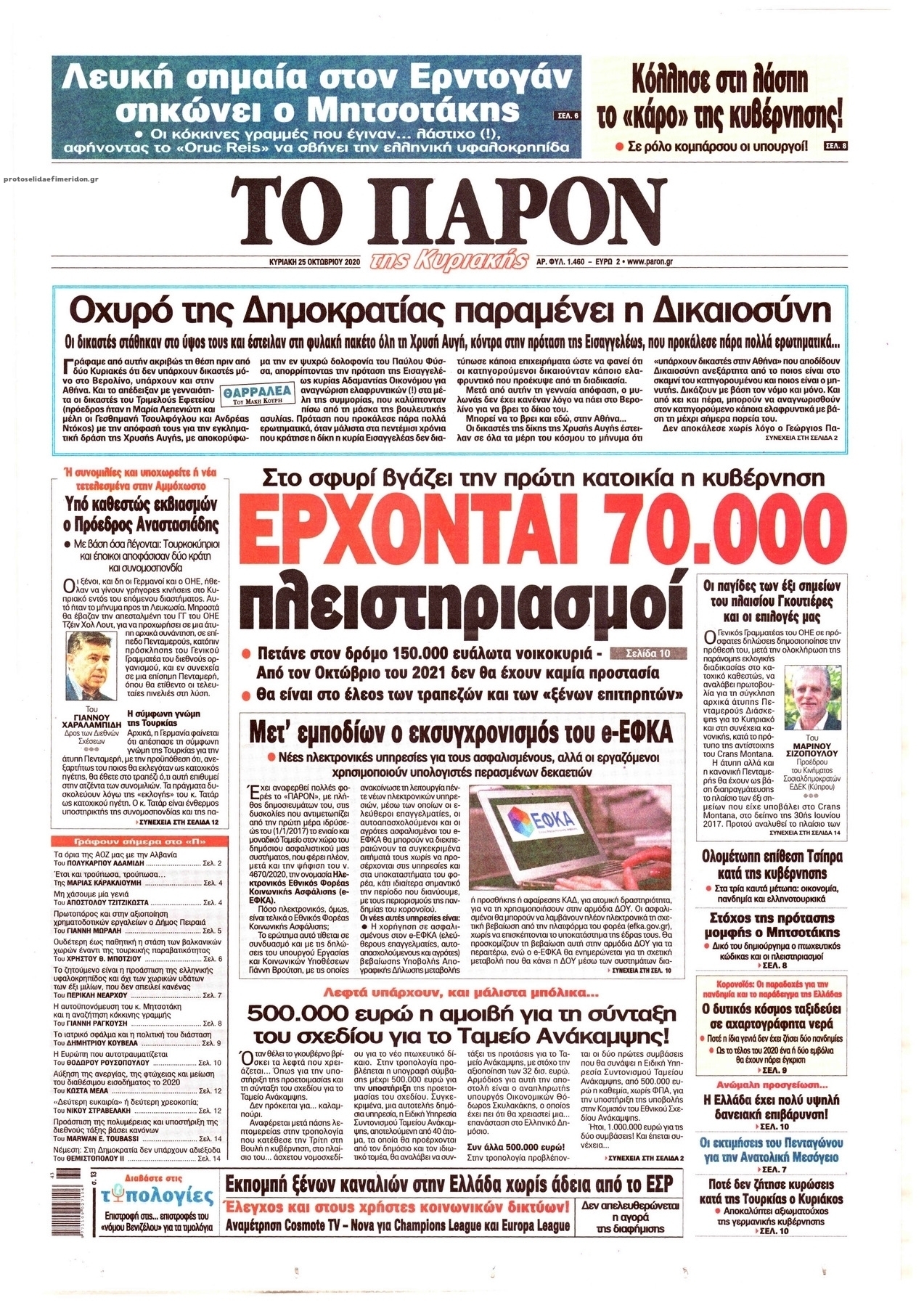 NewsMEDIASLIDER Διαβάστε όλα τα πρωτοσέλιδα των πολιτικών εφημερίδων της Κυριακής 25 Οκτωβρίου 2020 FacebookXEmailViberWhatsAppCopy URLΤυπώνω Διαβάστε όλα τα πρωτοσέλιδα των πολιτικών εφημερίδων της Κυριακής 25 Οκτωβρίου. Πλήρης ενημέρωση με μια γρήγορη ματιά!