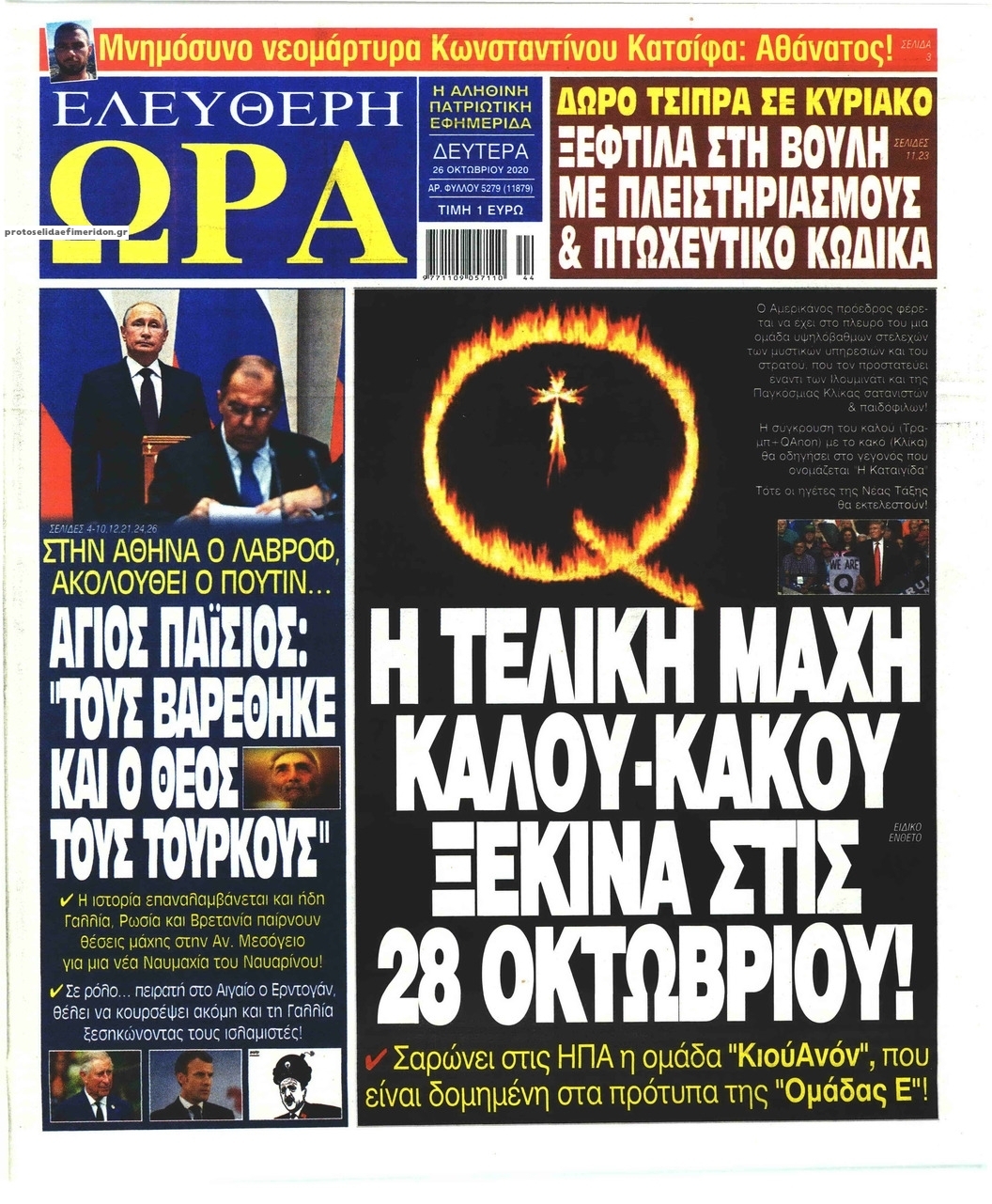NewsMEDIA Διαβάστε όλα τα πρωτοσέλιδα των πολιτικών εφημερίδων της Δευτέρας 26 Οκτωβρίου 2020 FacebookTwitterEmailViberWhatsAppCopy URLΤυπώνω Διαβάστε όλα τα πρωτοσέλιδα των πολιτικών εφημερίδων της Δευτέρας 26 Οκτωβρίου. Πλήρης ενημέρωση με μια γρήγορη ματιά!