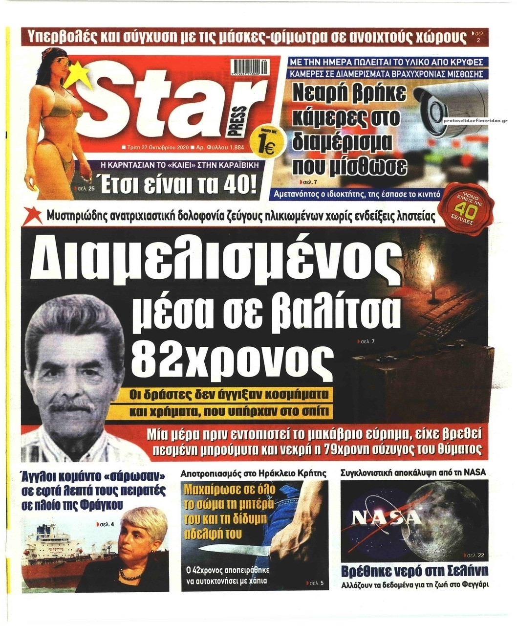 NewsMEDIASLIDER Διαβάστε όλα τα πρωτοσέλιδα των πολιτικών εφημερίδων της Τρίτης 27 Οκτωβρίου 2020 FacebookXEmailViberWhatsAppCopy URLΤυπώνω Διαβάστε όλα τα πρωτοσέλιδα των πολιτικών εφημερίδων της Τρίτης 27 Οκτωβρίου. Πλήρης ενημέρωση με μια γρήγορη ματιά!