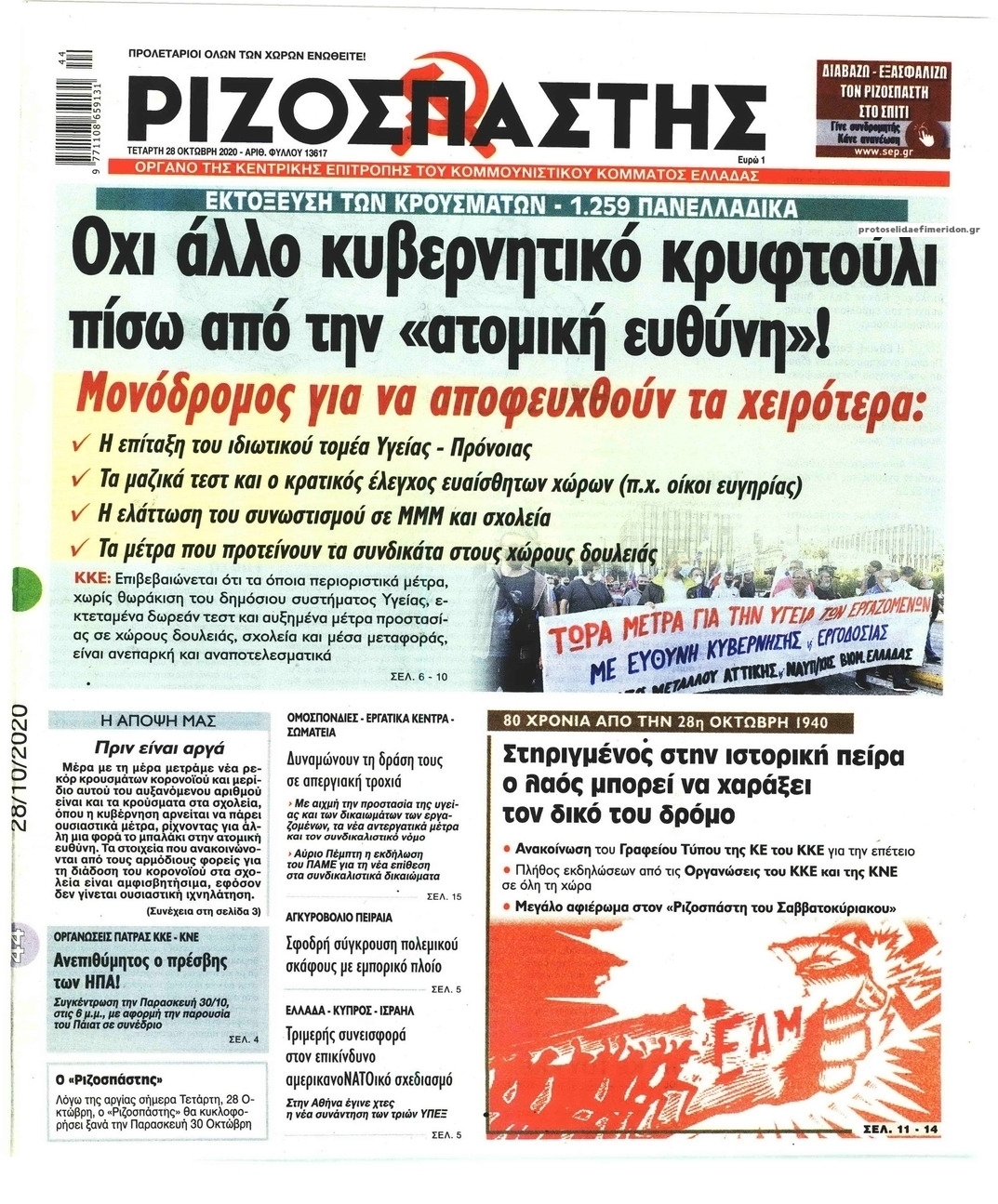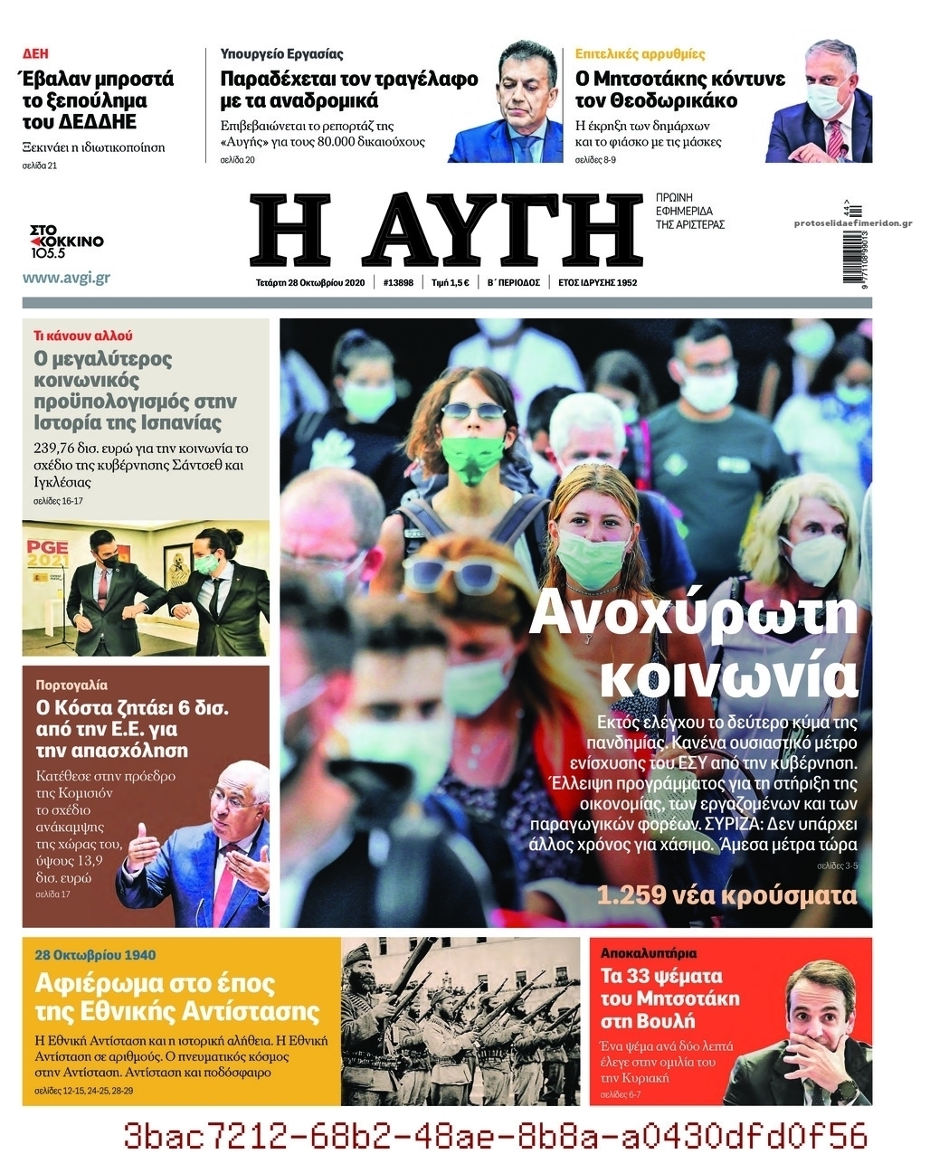 NewsMEDIASLIDER Διαβάστε όλα τα πρωτοσέλιδα των πολιτικών εφημερίδων της Τετάρτης 28 Οκτωβρίου 2020 FacebookTwitterEmailViberWhatsAppCopy URLΤυπώνω Διαβάστε όλα τα πρωτοσέλιδα των πολιτικών εφημερίδων της Τετάρτης 28 Οκτωβρίου. Πλήρης ενημέρωση με μια γρήγορη ματιά!