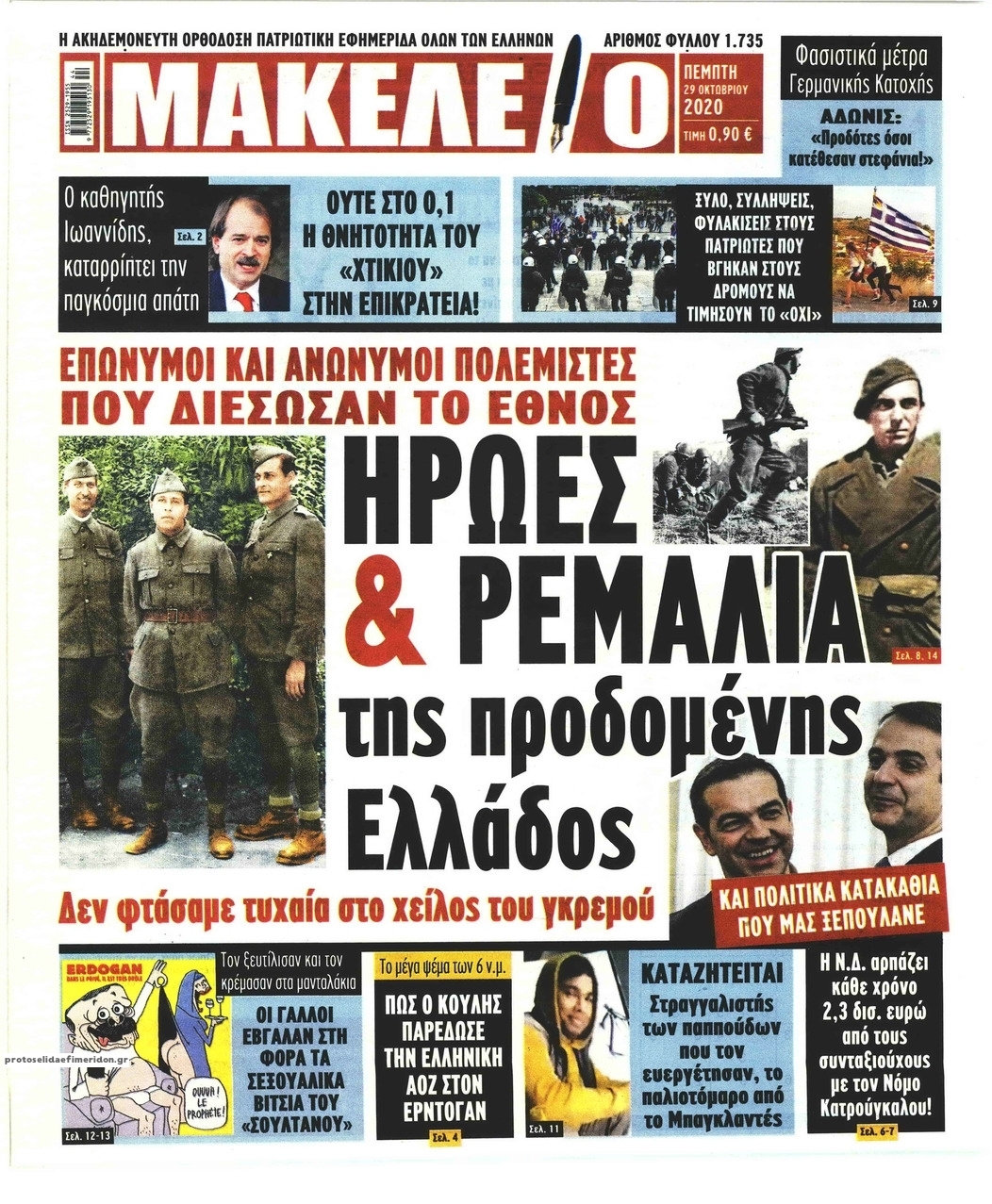 NewsMEDIA Διαβάστε όλα τα πρωτοσέλιδα των πολιτικών εφημερίδων της Πέμπτης 29 Οκτωβρίου 2020 FacebookTwitterEmailViberWhatsAppCopy URLΤυπώνω Διαβάστε όλα τα πρωτοσέλιδα των πολιτικών εφημερίδων της Πέμπτης 29 Οκτωβρίου. Πλήρης ενημέρωση με μια γρήγορη ματιά!