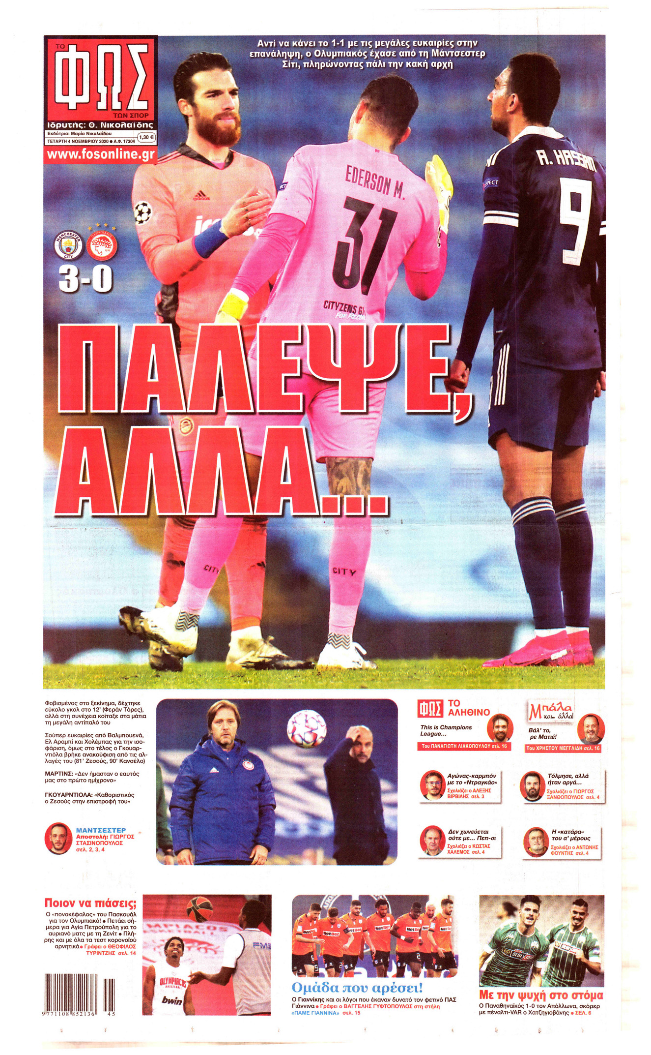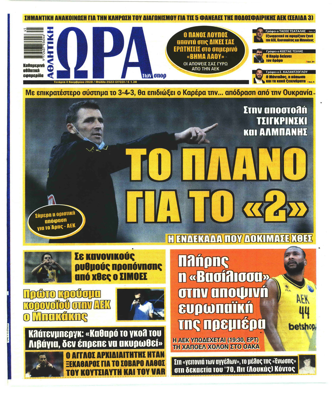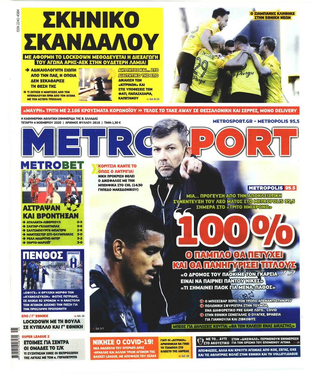 NewsMEDIA Διαβάστε όλα τα πρωτοσέλιδα των αθλητικών εφημερίδων της Τετάρτης 4 Νοεμβρίου 2020 FacebookTwitterEmailViberWhatsAppCopy URLΤυπώνω Διαβάστε όλα τα πρωτοσέλιδα των αθλητικών εφημερίδων της Τετάρτης 4 Νοεμβρίου. Πλήρης ενημέρωση με μια γρήγορη ματιά!
