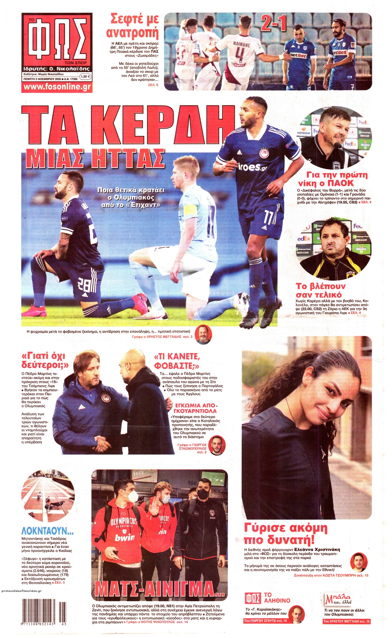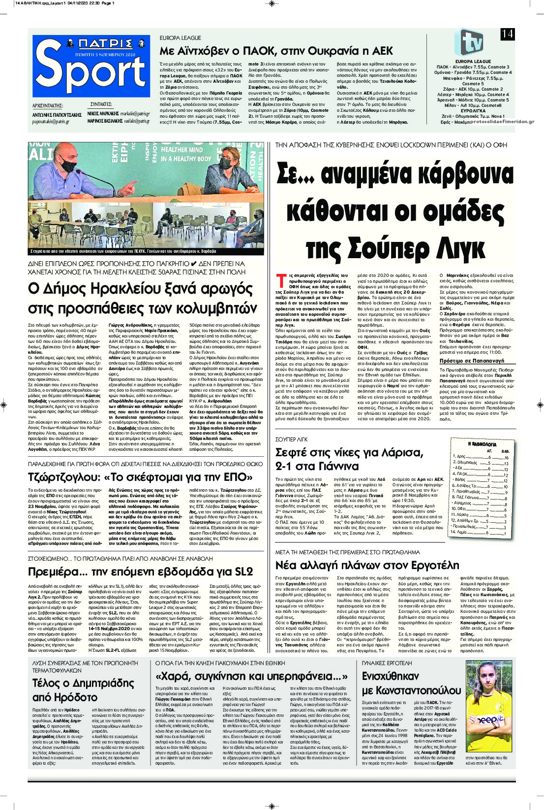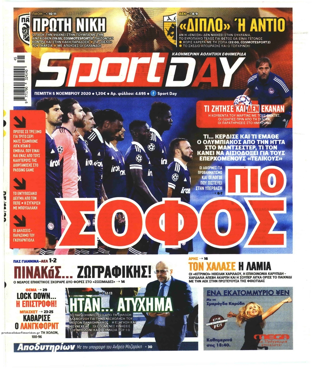 NewsMEDIA Διαβάστε όλα τα πρωτοσέλιδα των αθλητικών εφημερίδων της Πέμπτης 5 Νοεμβρίου 2020 FacebookTwitterEmailViberWhatsAppCopy URLΤυπώνω Διαβάστε όλα τα πρωτοσέλιδα των αθλητικών εφημερίδων της Πέμπτης 5 Νοεμβρίου. Πλήρης ενημέρωση με μια γρήγορη ματιά!