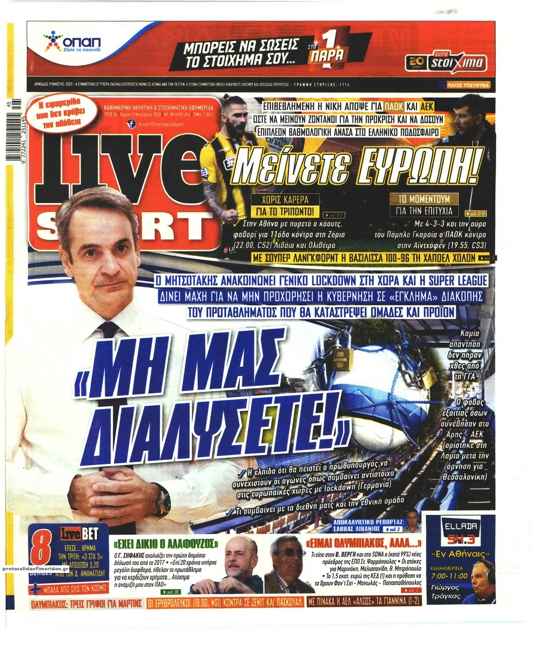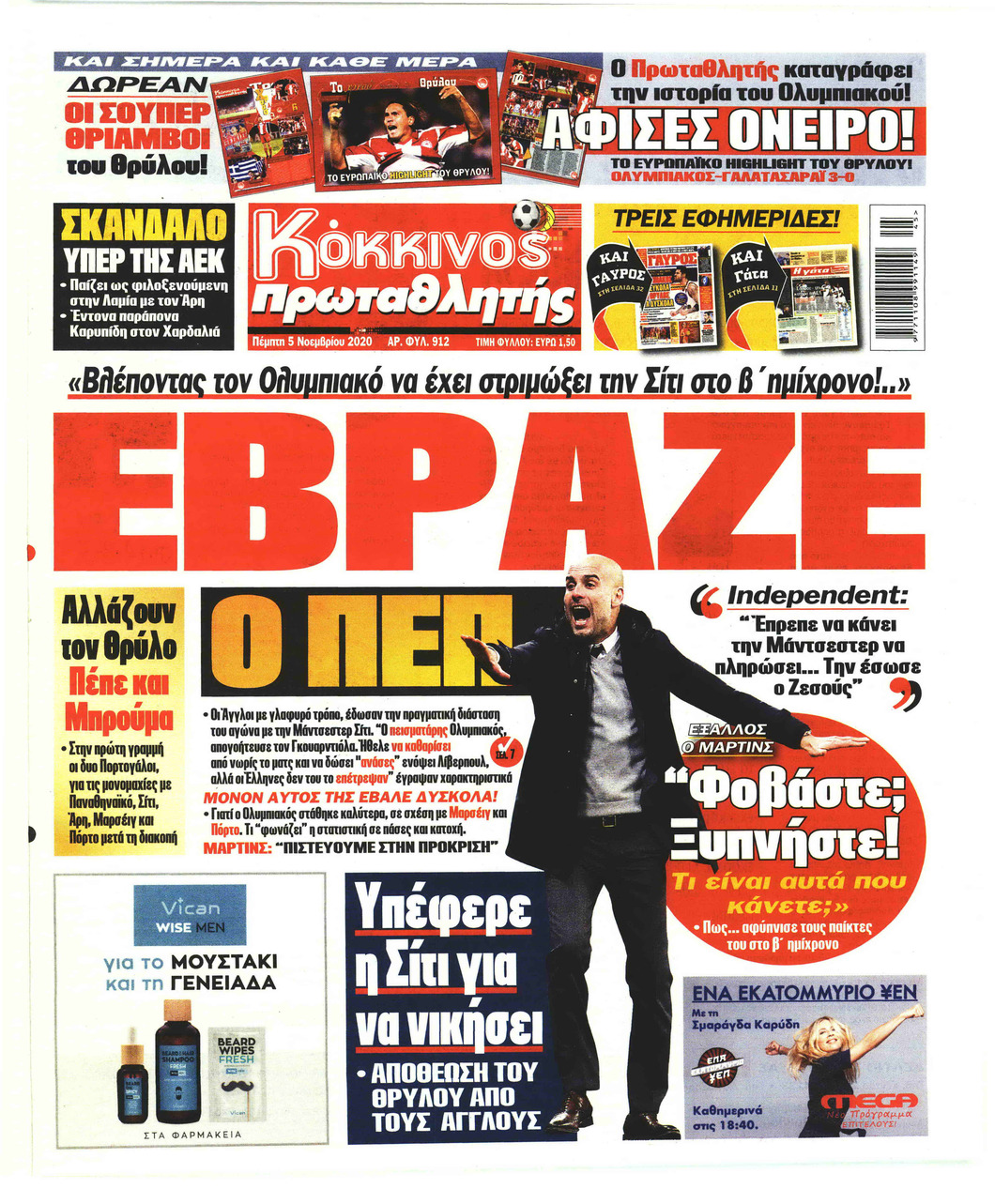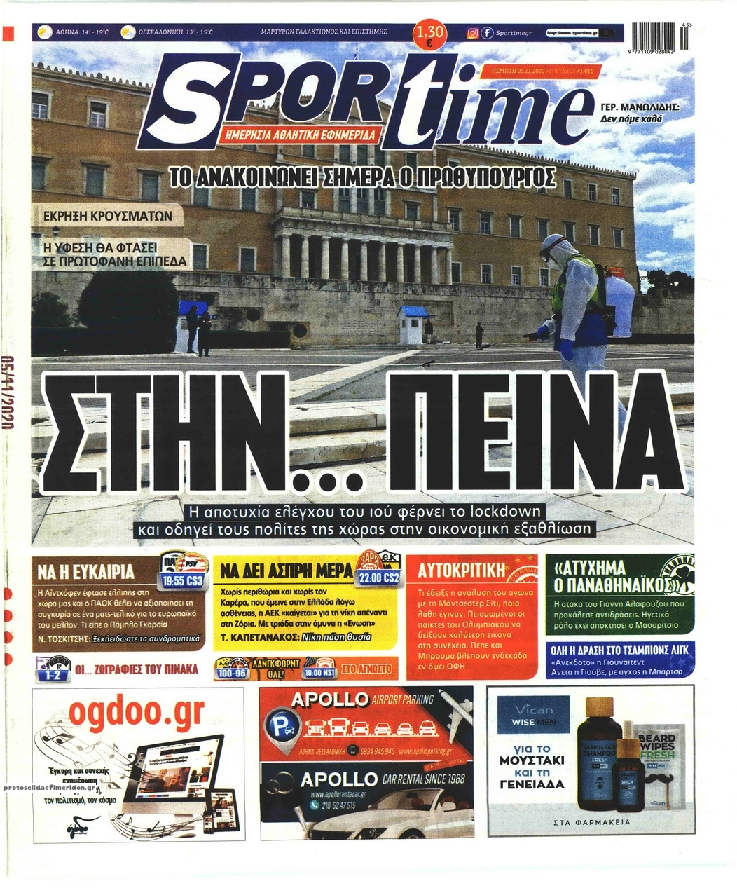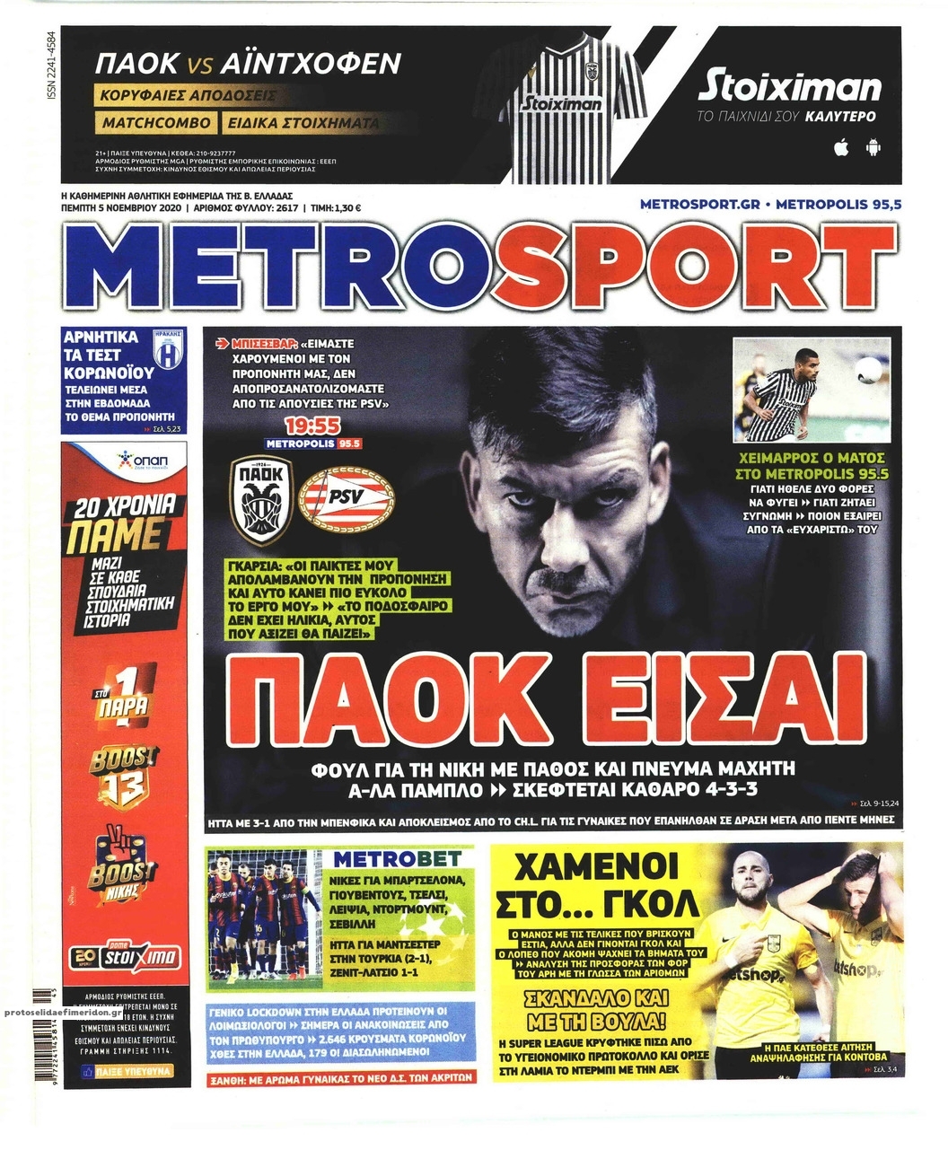 NewsMEDIA Διαβάστε όλα τα πρωτοσέλιδα των αθλητικών εφημερίδων της Πέμπτης 5 Νοεμβρίου 2020 FacebookTwitterEmailViberWhatsAppCopy URLΤυπώνω Διαβάστε όλα τα πρωτοσέλιδα των αθλητικών εφημερίδων της Πέμπτης 5 Νοεμβρίου. Πλήρης ενημέρωση με μια γρήγορη ματιά!