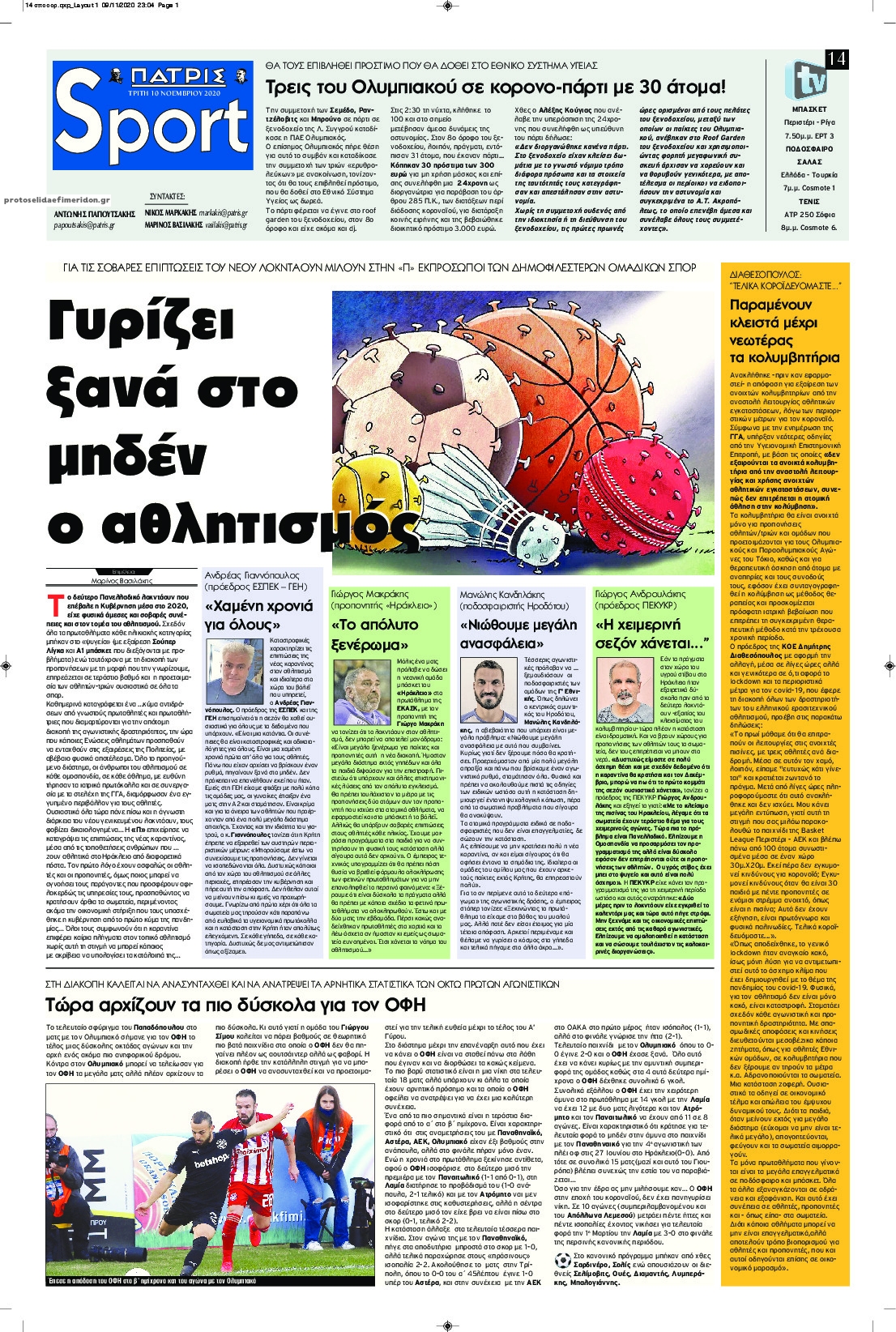 NewsMEDIA Διαβάστε όλα τα πρωτοσέλιδα των αθλητικών εφημερίδων της Τρίτης 10 Νοεμβρίου 2020 FacebookXEmailViberWhatsAppCopy URLΤυπώνω Διαβάστε όλα τα πρωτοσέλιδα των αθλητικών εφημερίδων της Τρίτης 10 Νοεμβρίου. Πλήρης ενημέρωση με μια γρήγορη ματιά!