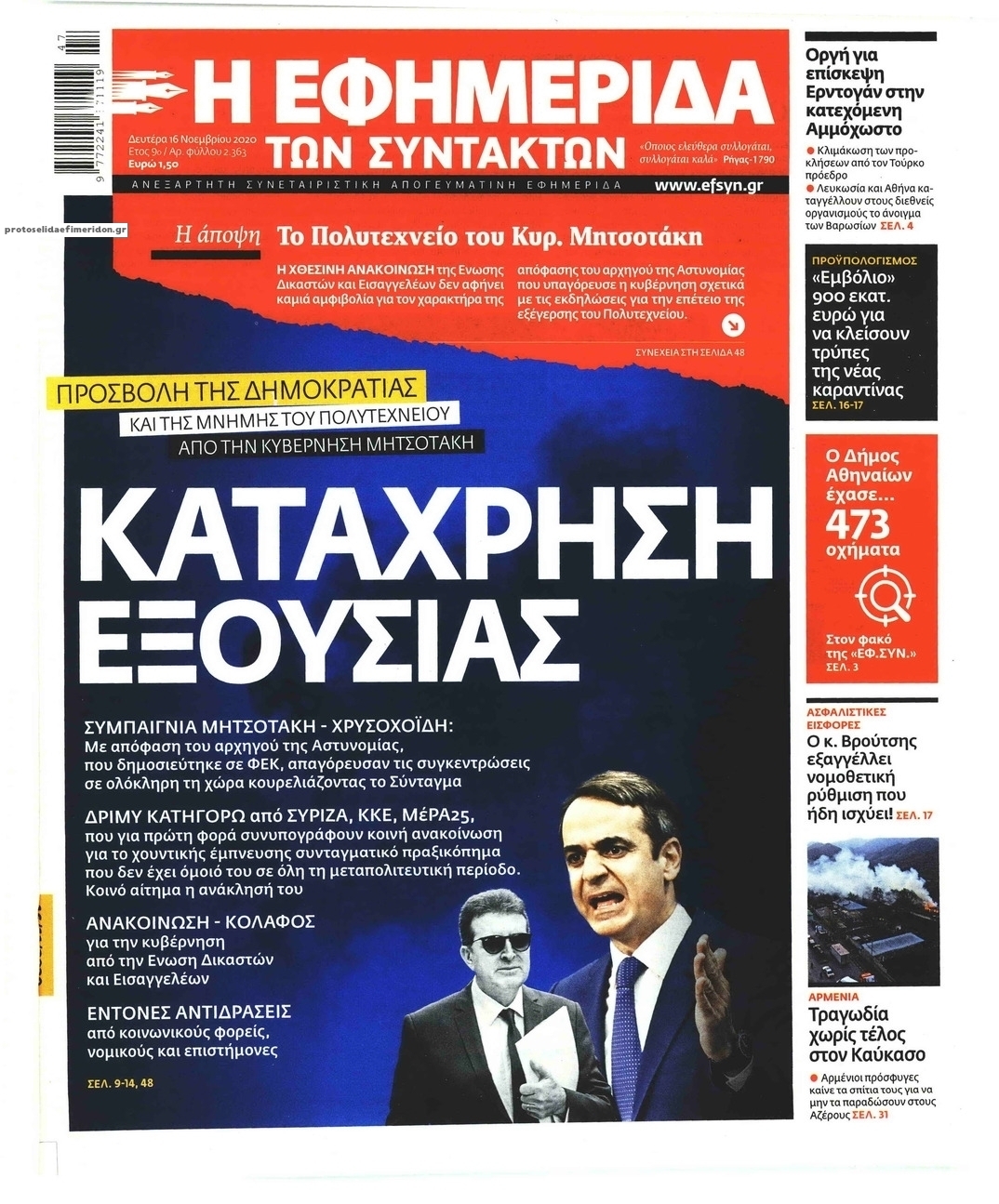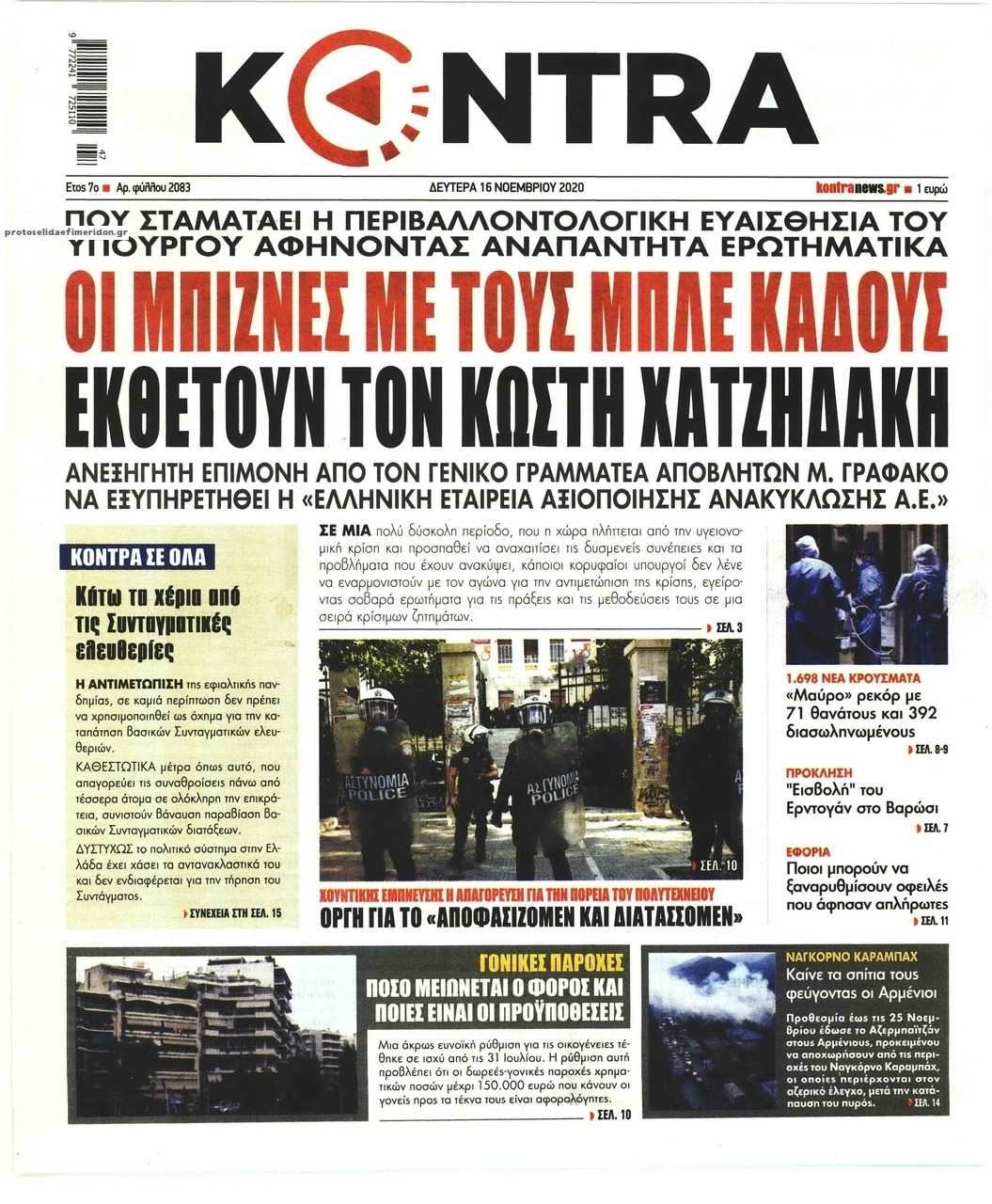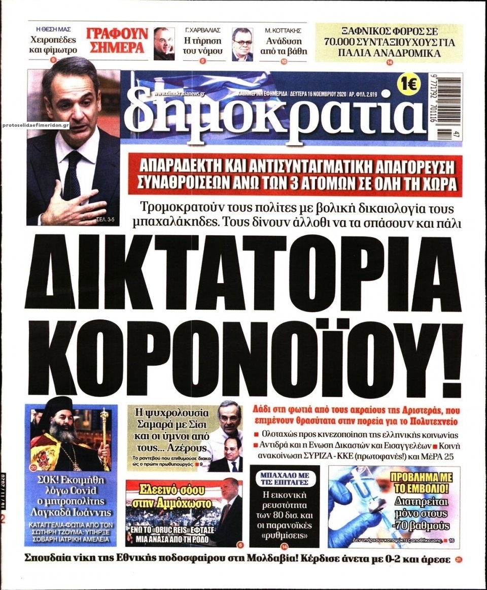 NewsMEDIASLIDER Διαβάστε όλα τα πρωτοσέλιδα των πολιτικών εφημερίδων της Δευτέρας 16 Νοεμβρίου 2020 FacebookTwitterEmailViberWhatsAppCopy URLΤυπώνω Διαβάστε όλα τα πρωτοσέλιδα των πολιτικών εφημερίδων της Δευτέρας 16 Νοεμβρίου. Πλήρης ενημέρωση με μια γρήγορη ματιά!