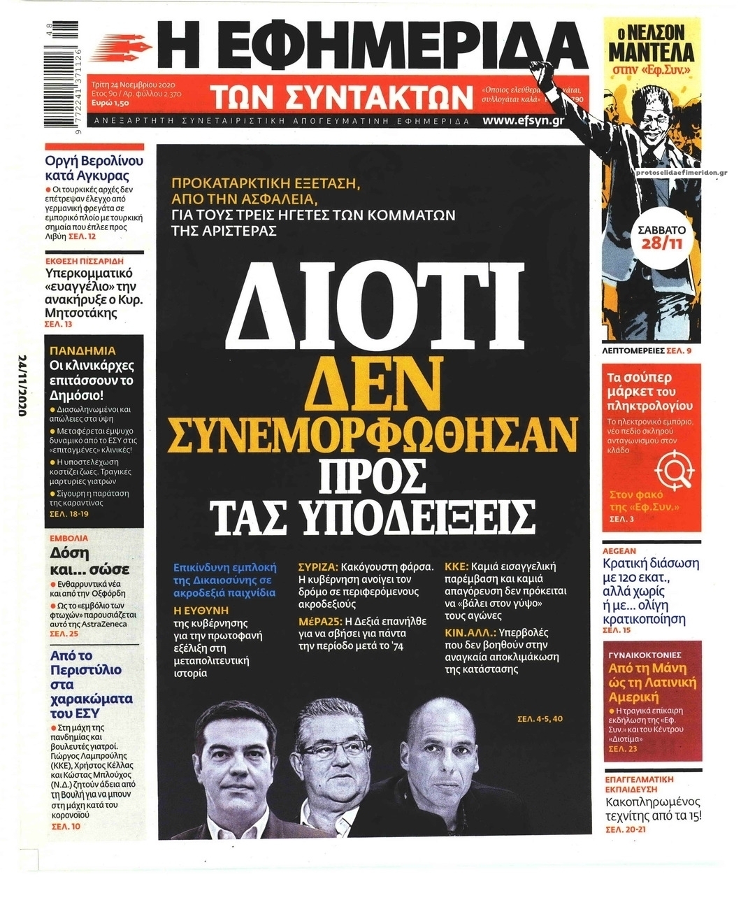 Διαβάστε όλα τα πρωτοσέλιδα των πολιτικών εφημερίδων της Τρίτης 24 Νοεμβρίου. Πλήρης ενημέρωση με μια γρήγορη ματιά!