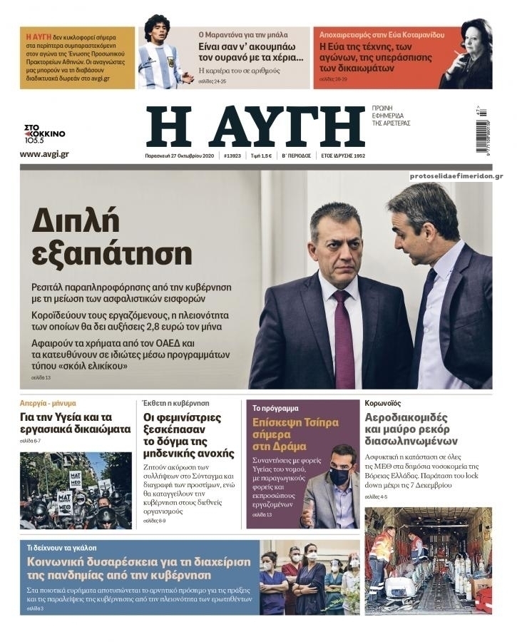 NewsMEDIASLIDER Διαβάστε όλα τα πρωτοσέλιδα των πολιτικών εφημερίδων της Παρασκευής 27 Νοεμβρίου 2020 FacebookTwitterEmailViberWhatsAppCopy URLΤυπώνω Διαβάστε όλα τα πρωτοσέλιδα των πολιτικών εφημερίδων της Παρασκευής 27 Νοεμβρίου. Πλήρης ενημέρωση με μια γρήγορη ματιά!