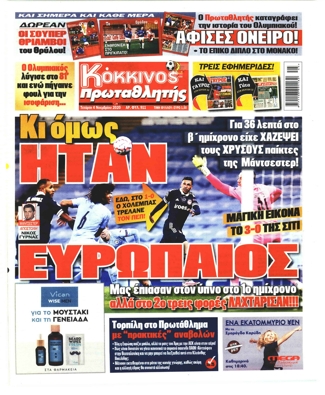 NewsMEDIA Διαβάστε όλα τα πρωτοσέλιδα των αθλητικών εφημερίδων της Τετάρτης 4 Νοεμβρίου 2020 FacebookTwitterEmailViberWhatsAppCopy URLΤυπώνω Διαβάστε όλα τα πρωτοσέλιδα των αθλητικών εφημερίδων της Τετάρτης 4 Νοεμβρίου. Πλήρης ενημέρωση με μια γρήγορη ματιά!
