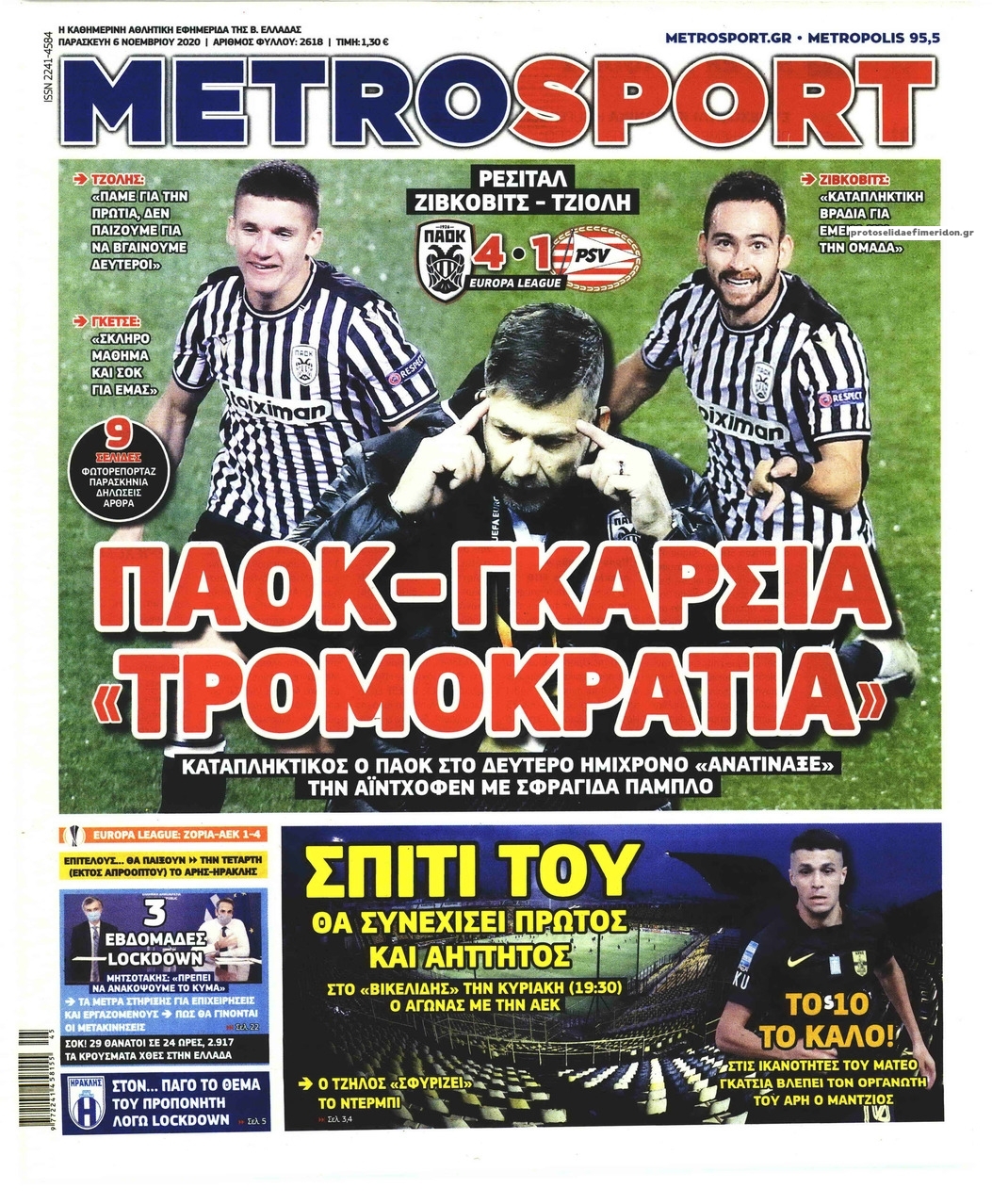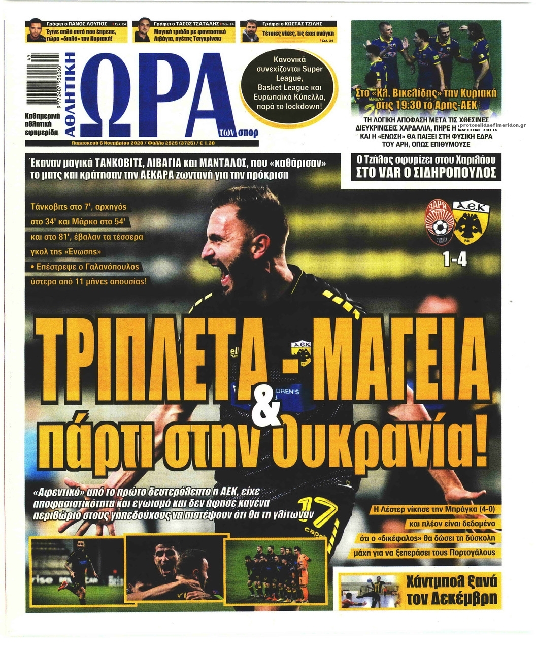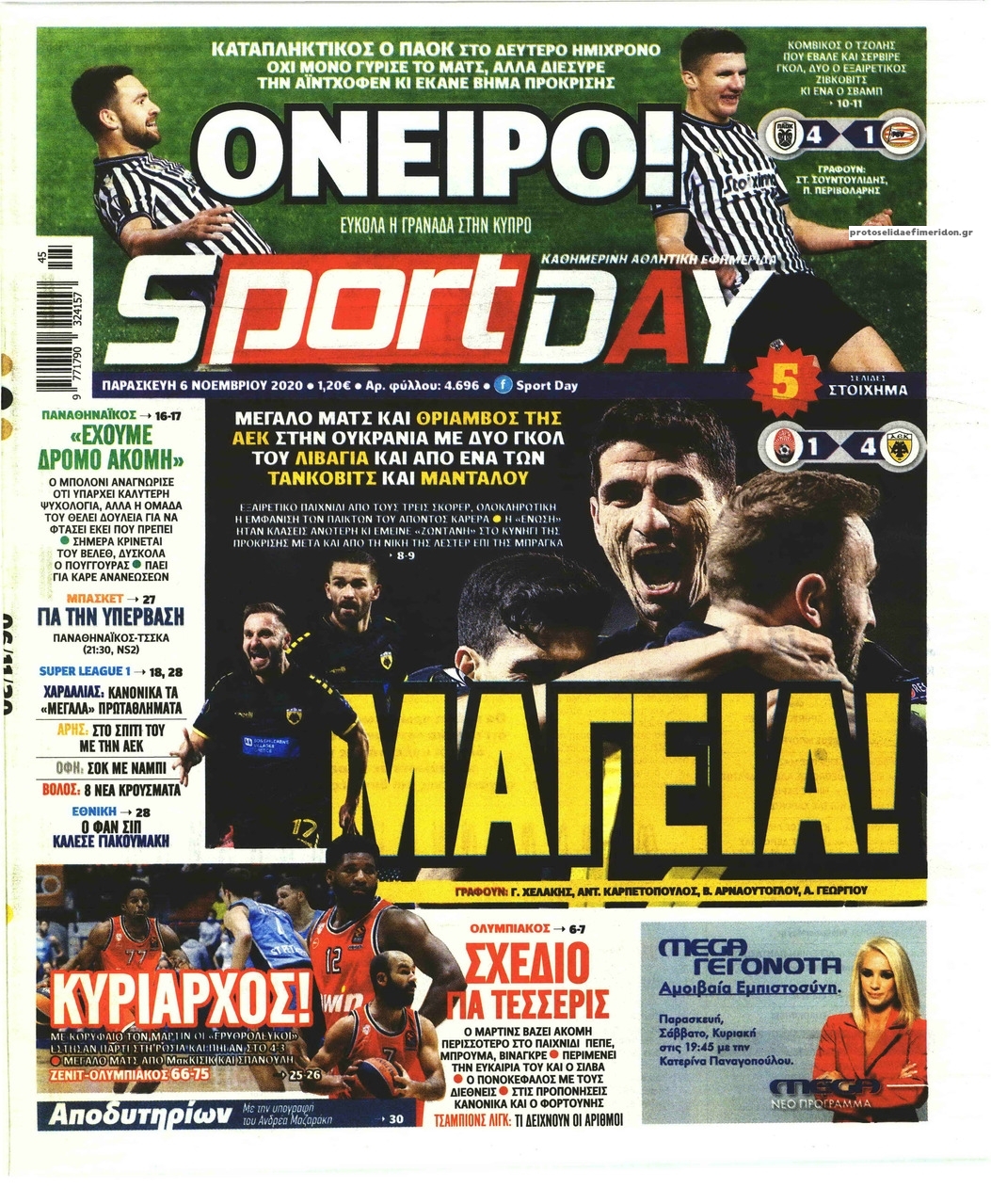 NewsMEDIA Διαβάστε όλα τα πρωτοσέλιδα των αθλητικών εφημερίδων της Παρασκευής 6 Νοεμβρίου 2020 FacebookTwitterEmailViberWhatsAppCopy URLΤυπώνω Διαβάστε όλα τα πρωτοσέλιδα των αθλητικών εφημερίδων της Παρασκευής 6 Νοεμβρίου. Πλήρης ενημέρωση με μια γρήγορη ματιά!