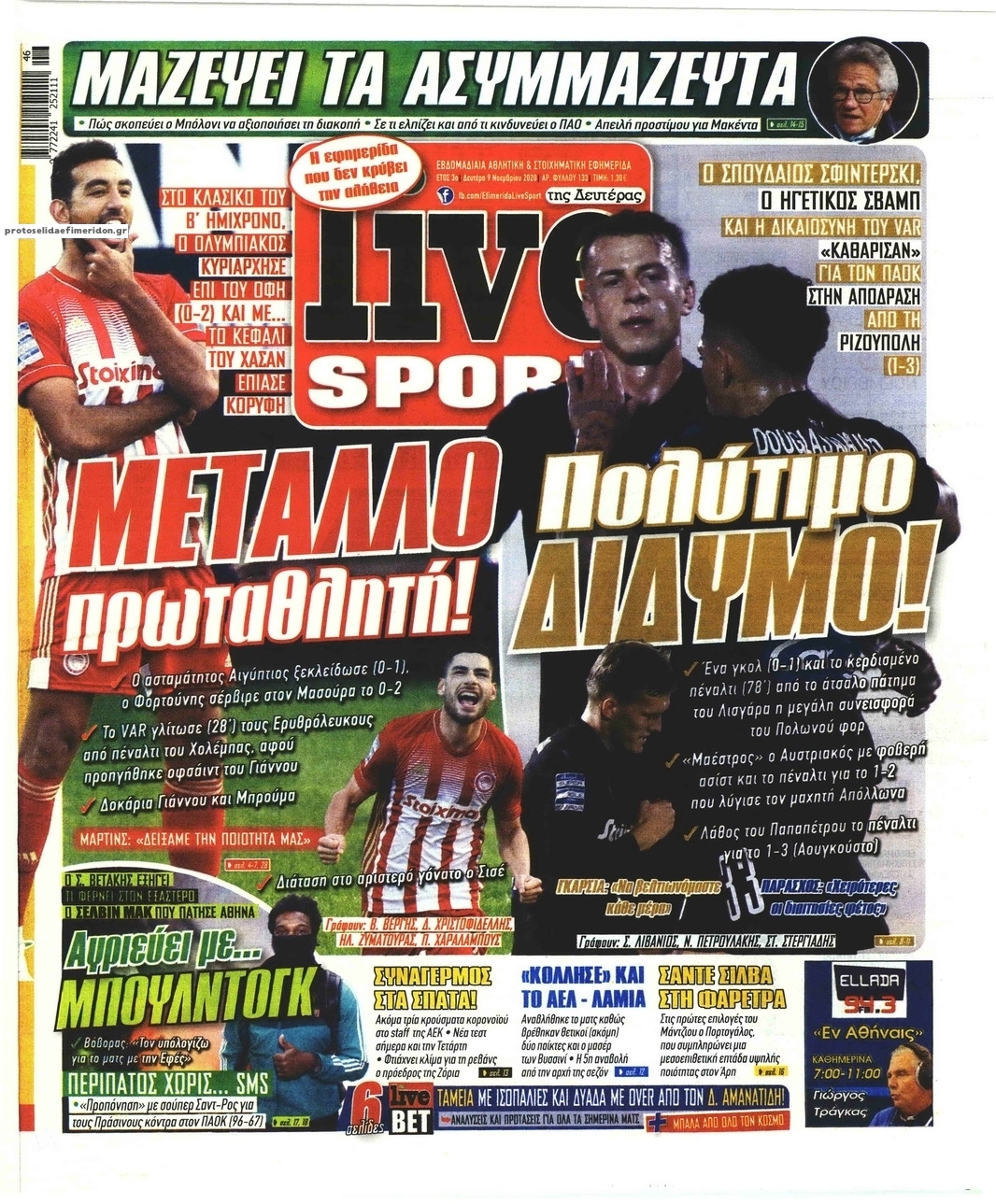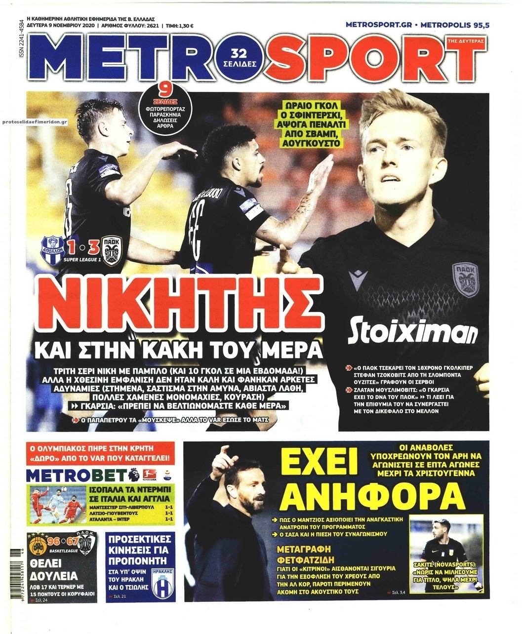 NewsMEDIA Διαβάστε όλα τα πρωτοσέλιδα των αθλητικών εφημερίδων της Δευτέρας 9 Νοεμβρίου 2020 FacebookXEmailViberWhatsAppCopy URLΤυπώνω Διαβάστε όλα τα πρωτοσέλιδα των αθλητικών εφημερίδων της Δευτέρας 9 Νοεμβρίου. Πλήρης ενημέρωση με μια γρήγορη ματιά!