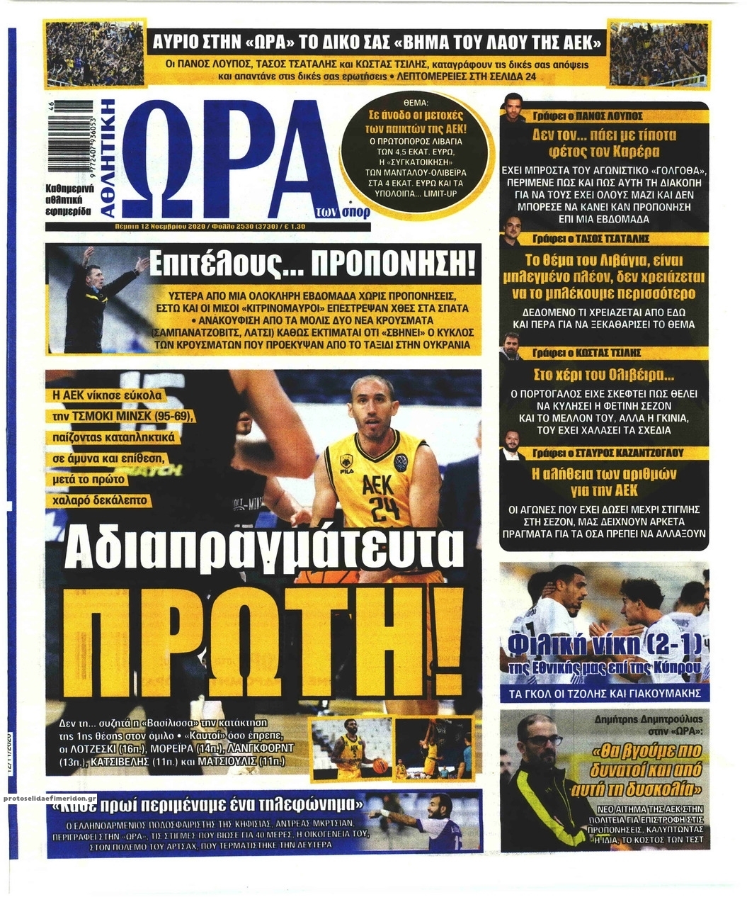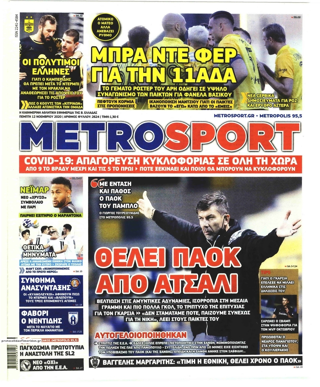 NewsMEDIA Διαβάστε όλα τα πρωτοσέλιδα των αθλητικών εφημερίδων της Πέμπτης 12 Νοεμβρίου 2020 FacebookXEmailViberWhatsAppCopy URLΤυπώνω Διαβάστε όλα τα πρωτοσέλιδα των αθλητικών εφημερίδων της Πέμπτης 12 Νοεμβρίου. Πλήρης ενημέρωση με μια γρήγορη ματιά!