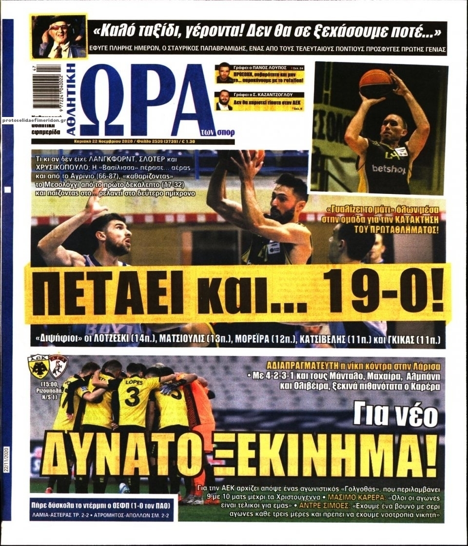 NewsMEDIA Διαβάστε όλα τα πρωτοσέλιδα των αθλητικών εφημερίδων της Κυριακής 22 Νοεμβρίου 2020 FacebookXEmailViberWhatsAppCopy URLΤυπώνω Διαβάστε όλα τα πρωτοσέλιδα των αθλητικών εφημερίδων της Κυριακής 22 Νοεμβρίου. Πλήρης ενημέρωση με μια γρήγορη ματιά!
