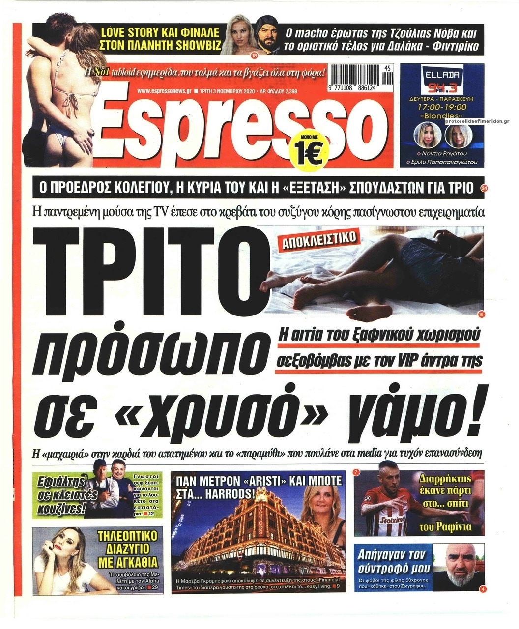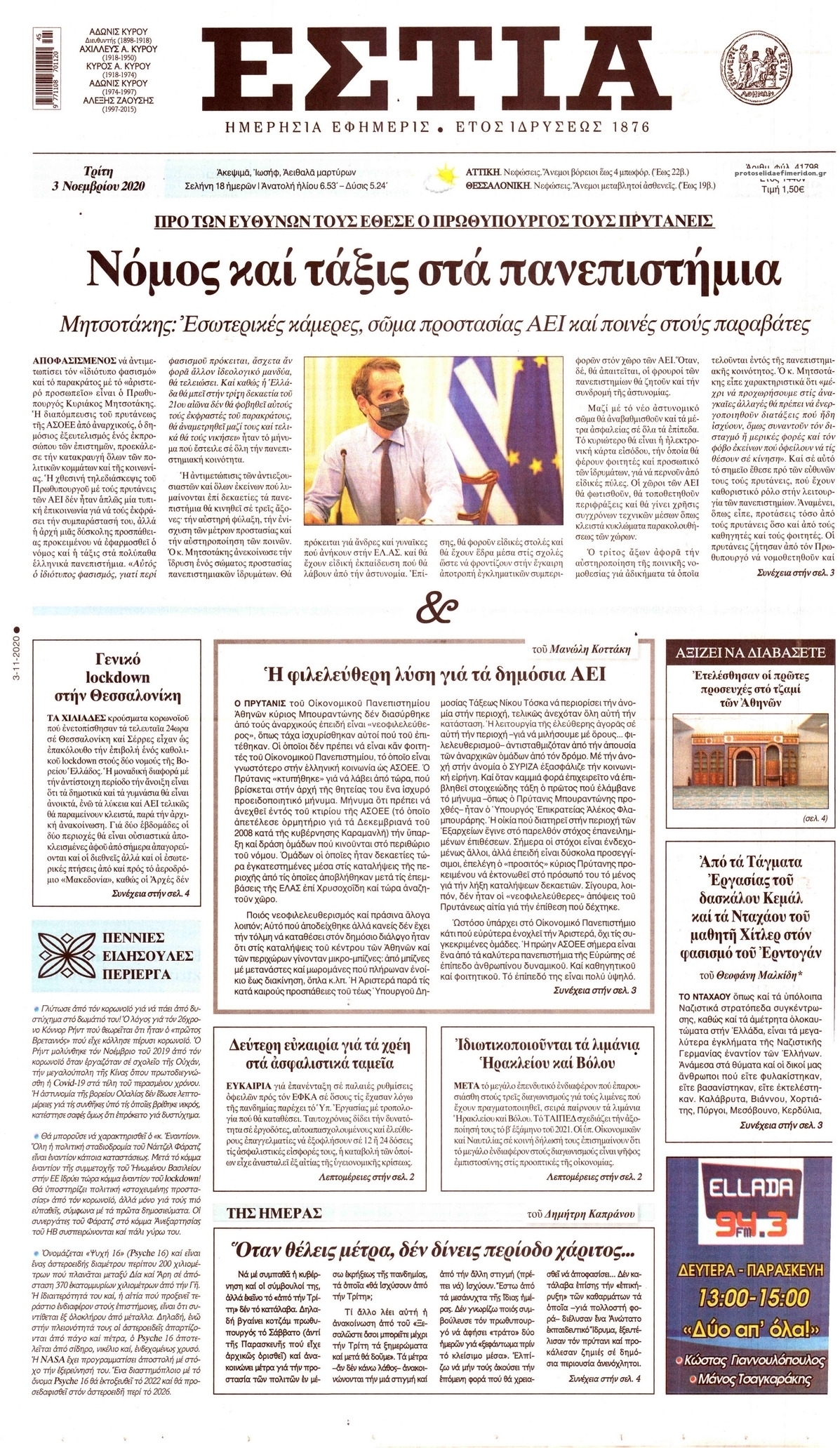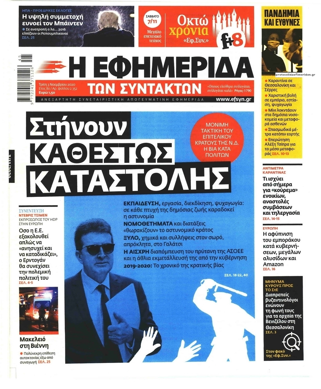 NewsMEDIA Διαβάστε όλα τα πρωτοσέλιδα των πολιτικών εφημερίδων της Τρίτης 3 Νοεμβρίου 2020 FacebookXEmailViberWhatsAppCopy URLΤυπώνω Διαβάστε όλα τα πρωτοσέλιδα των πολιτικών εφημερίδων της Τρίτης 3 Νοεμβρίου. Πλήρης ενημέρωση με μια γρήγορη ματιά!