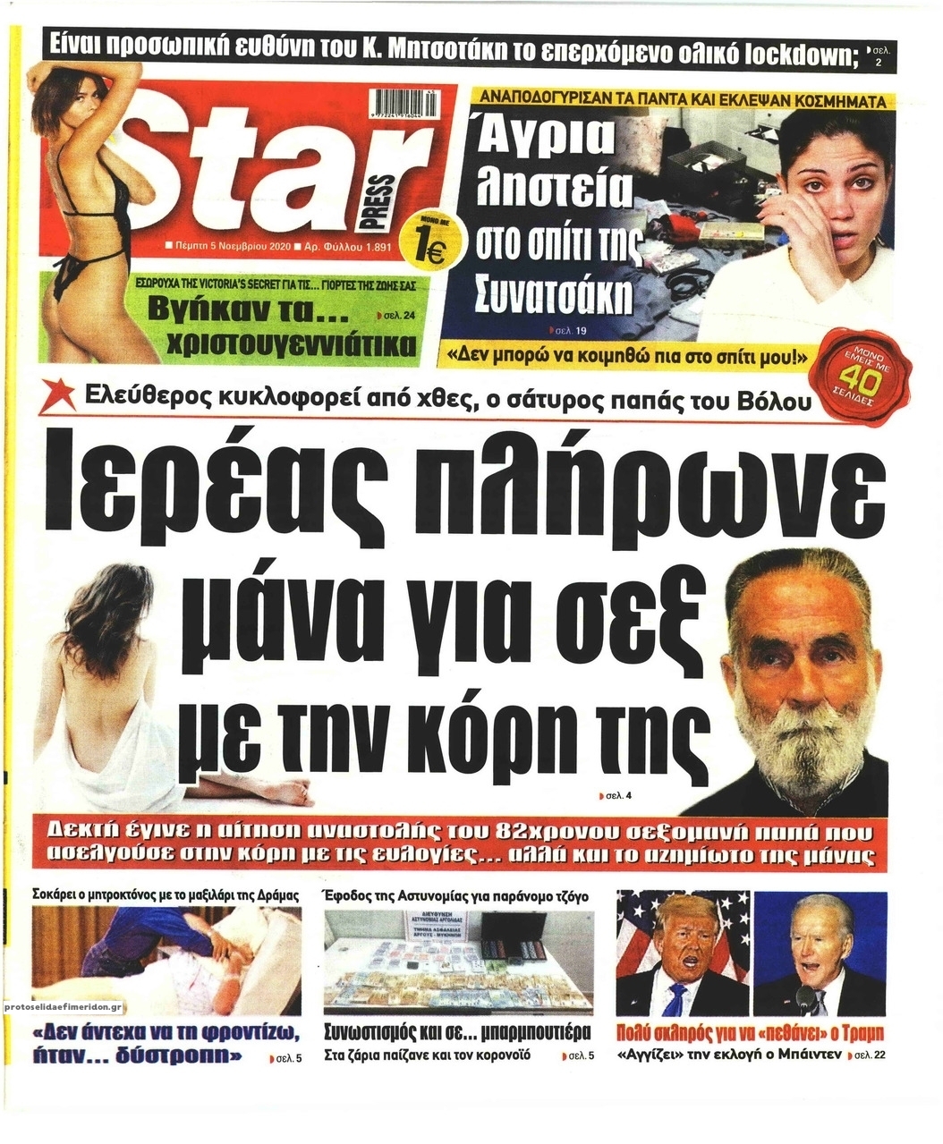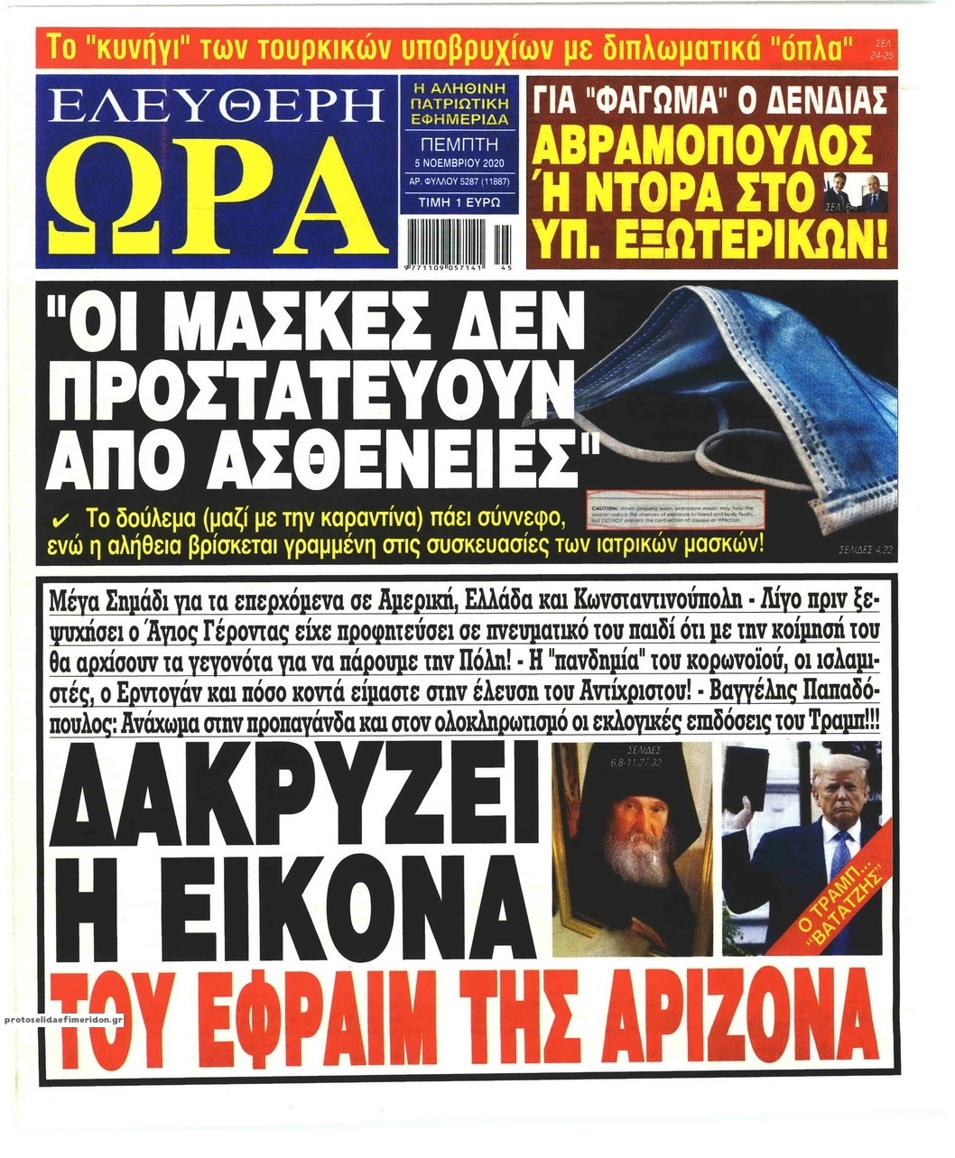 NewsMEDIA Διαβάστε όλα τα πρωτοσέλιδα των πολιτικών εφημερίδων της Πέμπτης 5 Νοεμβρίου 2020 FacebookXEmailViberWhatsAppCopy URLΤυπώνω Διαβάστε όλα τα πρωτοσέλιδα των πολιτικών εφημερίδων της Πέμπτης 5 Νοεμβρίου. Πλήρης ενημέρωση με μια γρήγορη ματιά!