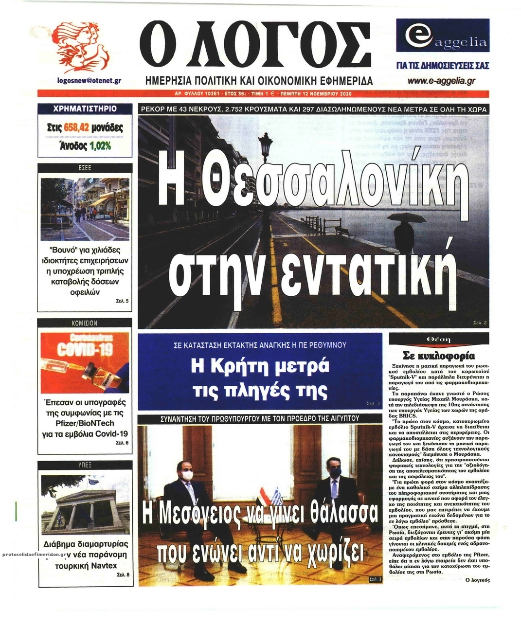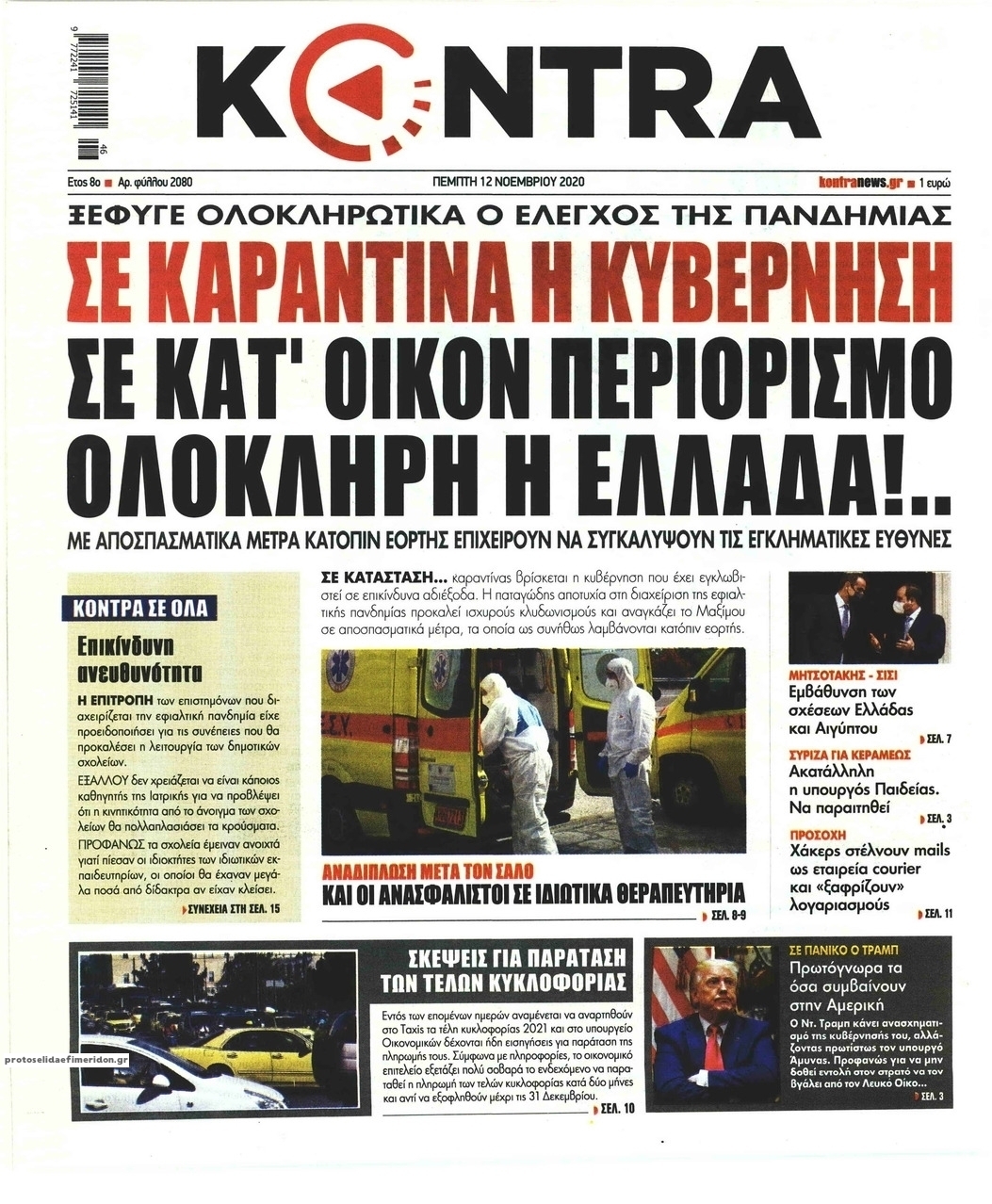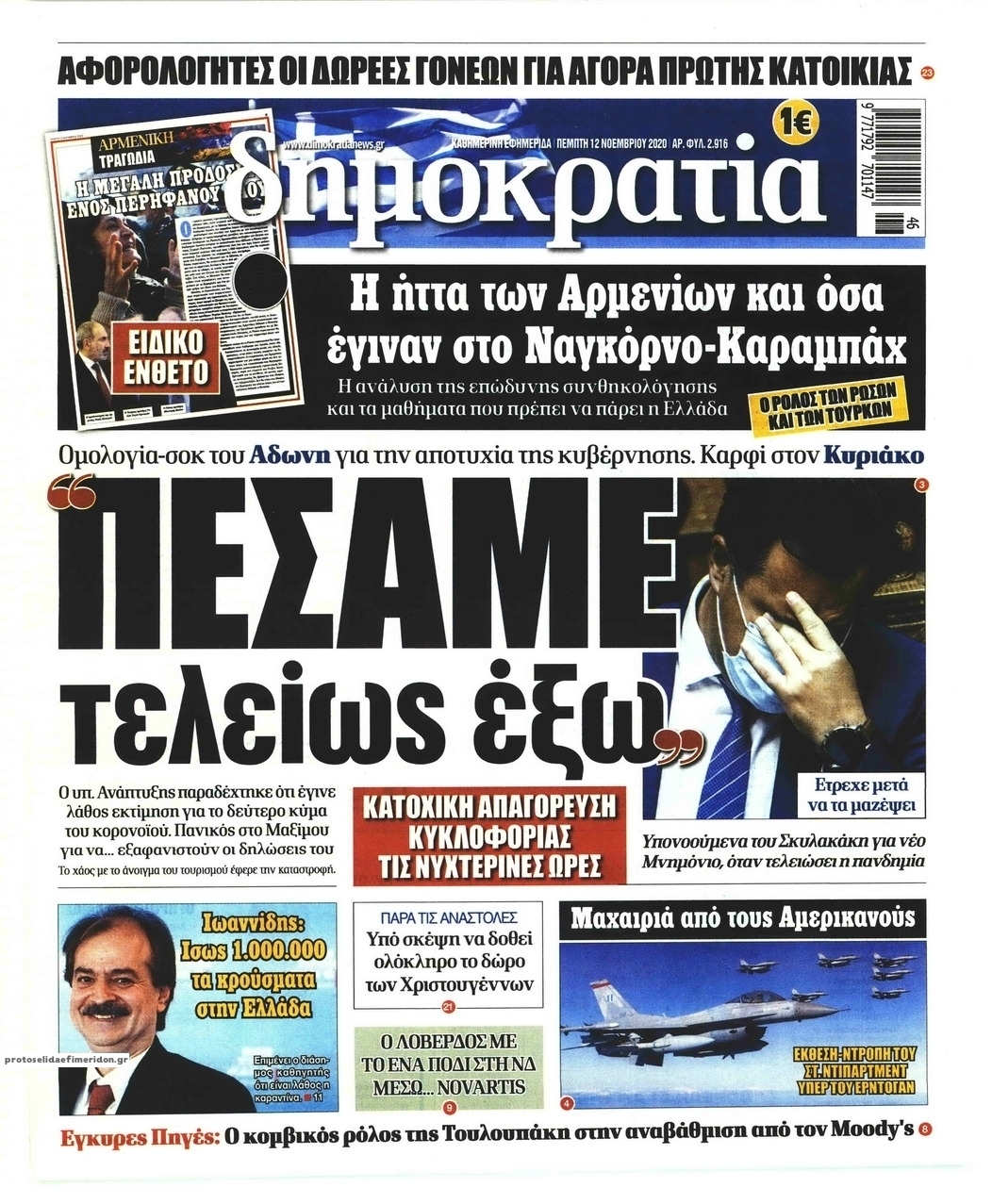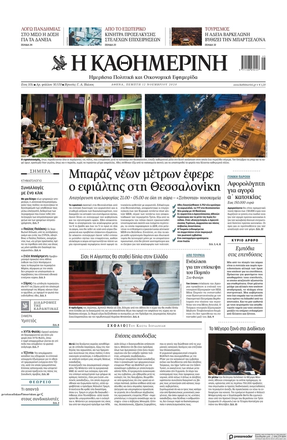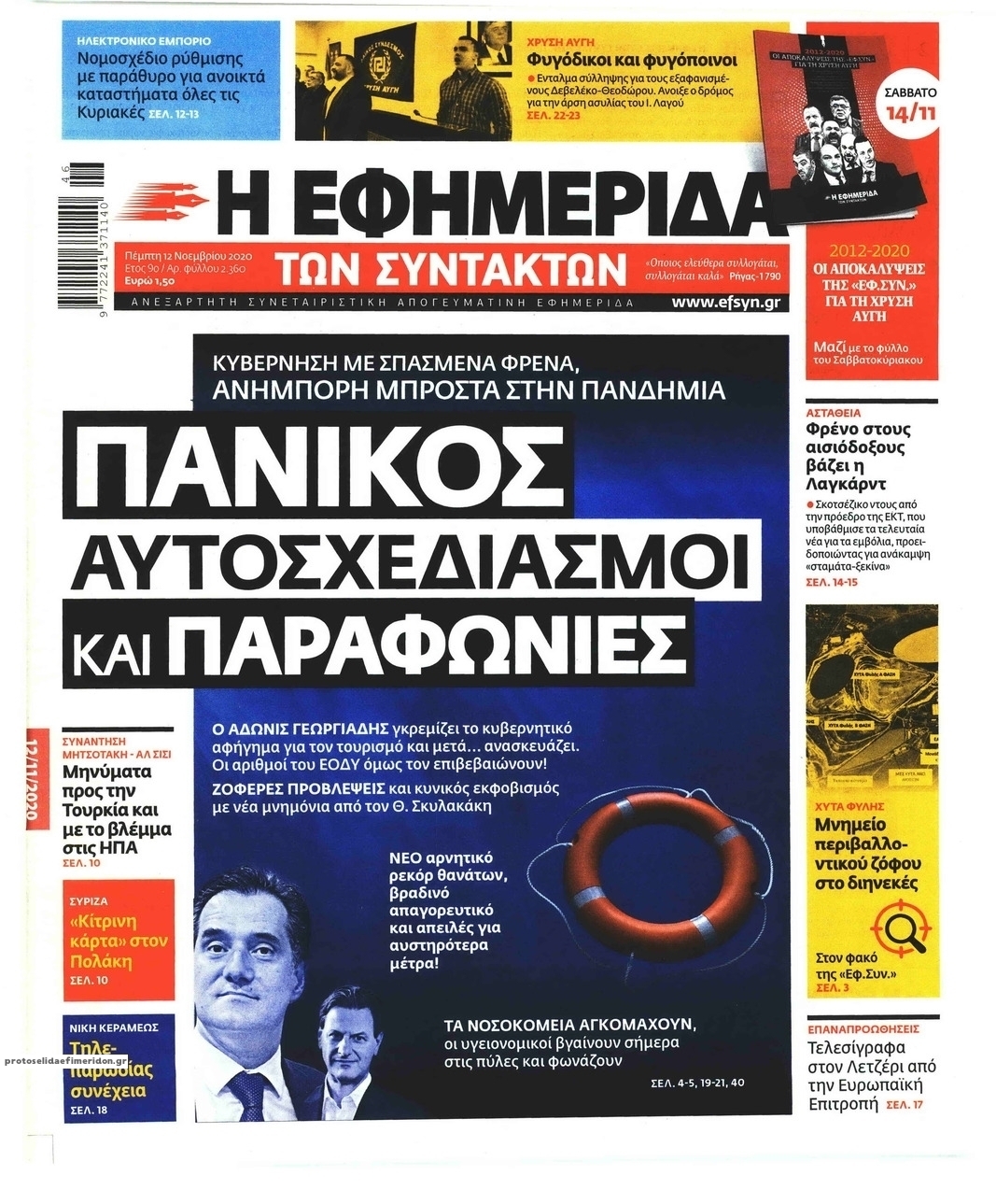 NewsMEDIA Διαβάστε όλα τα πρωτοσέλιδα των πολιτικών εφημερίδων της Πέμπτης 12 Νοεμβρίου 2020 FacebookXEmailViberWhatsAppCopy URLΤυπώνω Διαβάστε όλα τα πρωτοσέλιδα των πολιτικών εφημερίδων της Πέμπτης 12 Νοεμβρίου. Πλήρης ενημέρωση με μια γρήγορη ματιά!