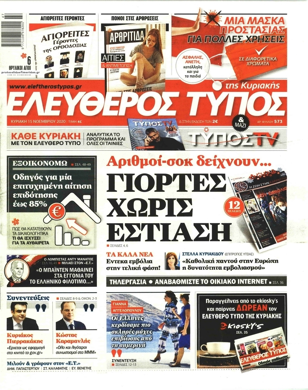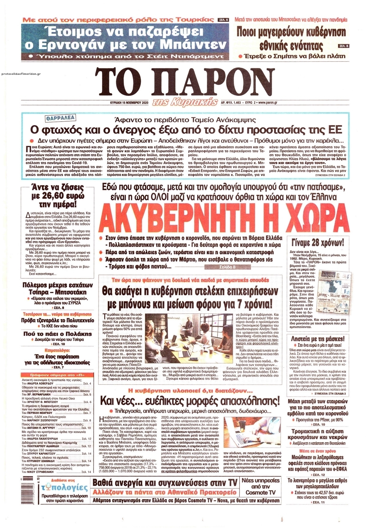NewsMEDIASLIDER Διαβάστε όλα τα πρωτοσέλιδα των πολιτικών εφημερίδων της Κυριακής 15 Νοεμβρίου 2020 FacebookXEmailViberWhatsAppCopy URLΤυπώνω Διαβάστε όλα τα πρωτοσέλιδα των πολιτικών εφημερίδων της Κυριακής 15 Νοεμβρίου. Πλήρης ενημέρωση με μια γρήγορη ματιά!