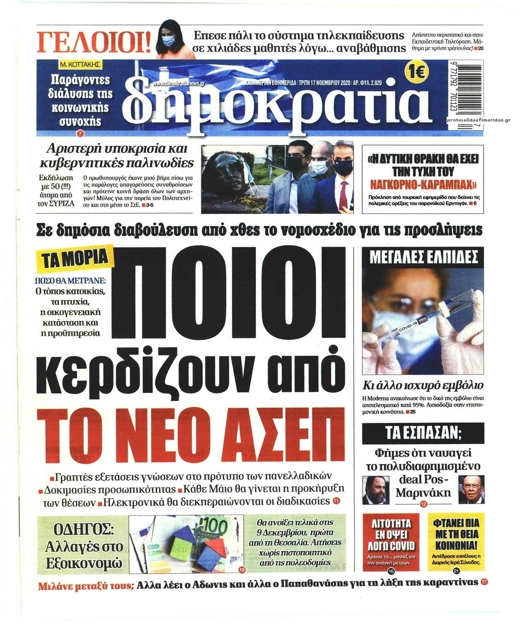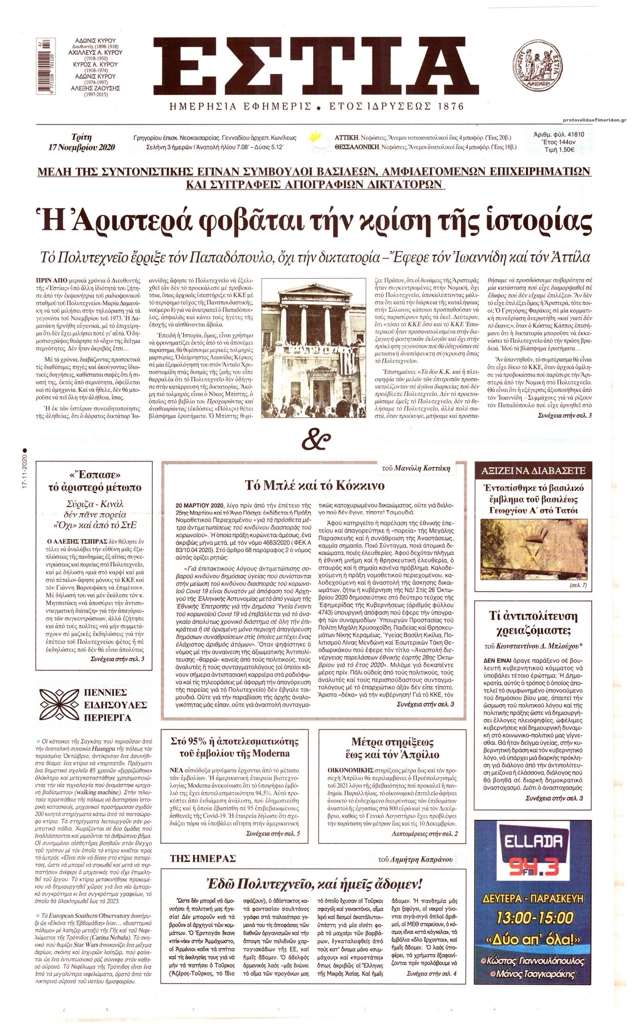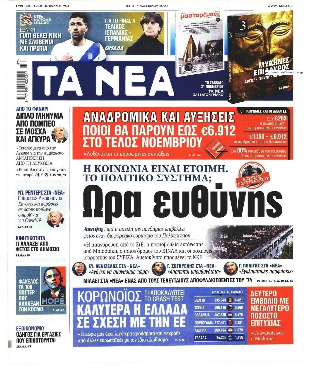 Διαβάστε όλα τα πρωτοσέλιδα των πολιτικών εφημερίδων της Τρίτης 17 Νοεμβρίου. Πλήρης ενημέρωση με μια γρήγορη ματιά!
