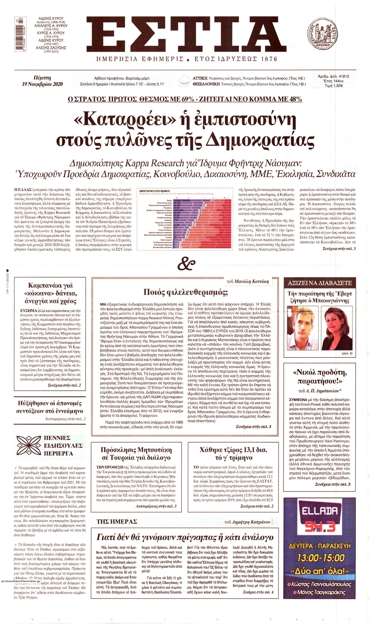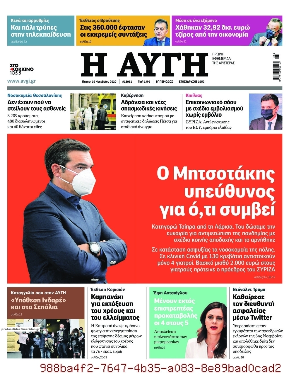 NewsMEDIASLIDER Διαβάστε όλα τα πρωτοσέλιδα των πολιτικών εφημερίδων της Πέμπτης 19 Νοεμβρίου 2020 FacebookXEmailViberWhatsAppCopy URLΤυπώνω Διαβάστε όλα τα πρωτοσέλιδα των πολιτικών εφημερίδων της Πέμπτης 19 Νοεμβρίου. Πλήρης ενημέρωση με μια γρήγορη ματιά!