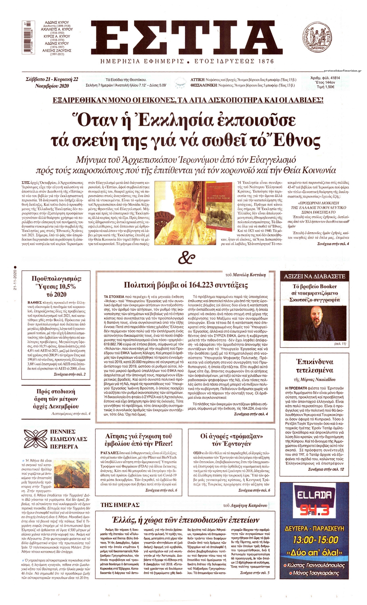 NewsMEDIA Διαβάστε όλα τα πρωτοσέλιδα των πολιτικών εφημερίδων του Σαββάτου 21 Νοεμβρίου 2020 FacebookTwitterEmailViberWhatsAppCopy URLΤυπώνω Διαβάστε όλα τα πρωτοσέλιδα των πολιτικών εφημερίδων του Σαββάτου 21 Νοεμβρίου. Πλήρης ενημέρωση με μια γρήγορη ματιά!