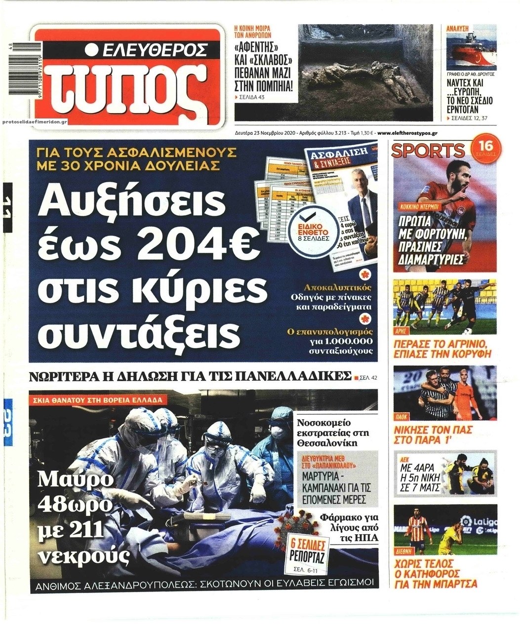 NewsMEDIASLIDER Διαβάστε όλα τα πρωτοσέλιδα των πολιτικών εφημερίδων της Δευτέρας 23 Νοεμβρίου 2020 FacebookXEmailViberWhatsAppCopy URLΤυπώνω Διαβάστε όλα τα πρωτοσέλιδα των πολιτικών εφημερίδων της Δευτέρας 23 Νοεμβρίου. Πλήρης ενημέρωση με μια γρήγορη ματιά!
