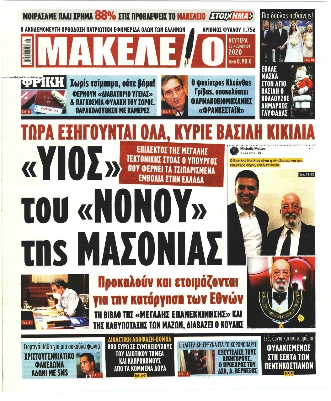 NewsMEDIASLIDER Διαβάστε όλα τα πρωτοσέλιδα των πολιτικών εφημερίδων της Δευτέρας 23 Νοεμβρίου 2020 FacebookTwitterEmailViberWhatsAppCopy URLΤυπώνω Διαβάστε όλα τα πρωτοσέλιδα των πολιτικών εφημερίδων της Δευτέρας 23 Νοεμβρίου. Πλήρης ενημέρωση με μια γρήγορη ματιά!